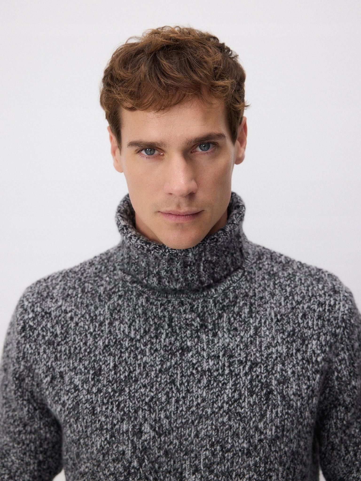 Чорно-сірий свердловина з довгими рукавами меланж з домішкою вовни l