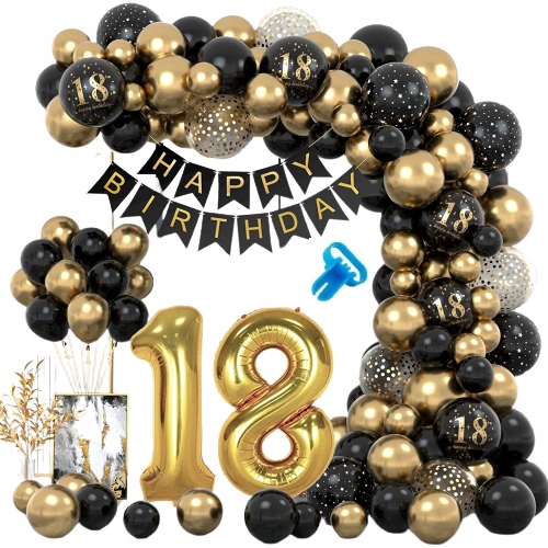 ЧОРНО-ЗОЛОТИЙ НАБІР З ПОВІТРЯНИХ КУЛЬ НА 18 РІЧЧЯ НА ДЕНЬ НАРОДЖЕННЯ НАБІР НА 18 РІЧНЯ
