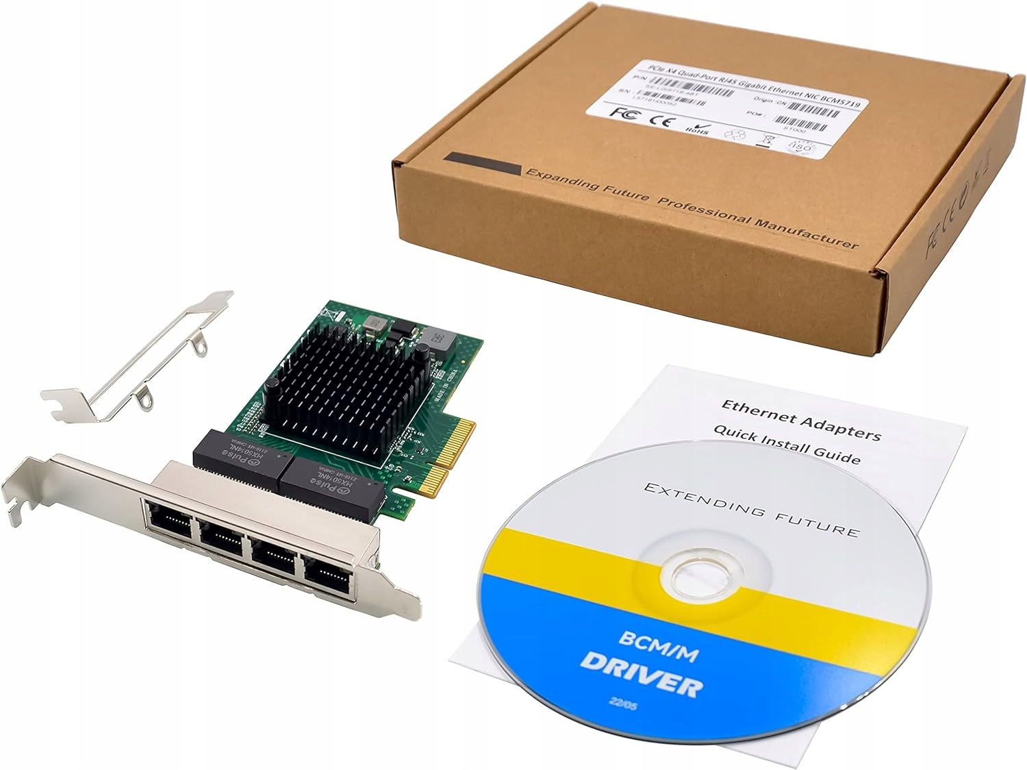 Чотири порти PCIe Gigabit Network Card NetXtreme BCM5719 Чіпсет 1000 Мбіт/с
