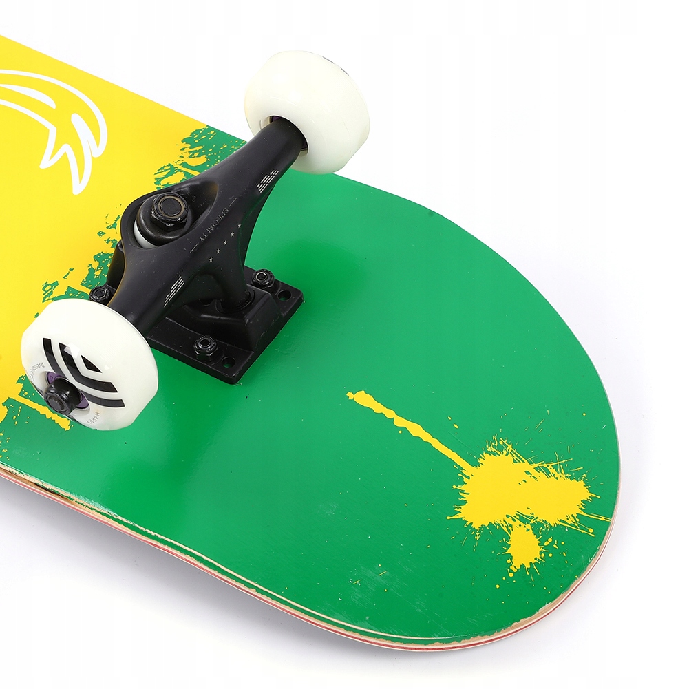1, тип подвійної деформованої спини, легкий у керуванні, стабільна робота, сила блокування, високий удар. 2. Виготовлений з високоякісної дошки клена, міцної міцності, без тріщин, більш стисливий і безпечний. Велике колесо 3, 95A з високоміцного поліуретану, тихе та зносостійке, дуже гнучке та протиковзке, що забезпечує зчеплення, зміну напрямку та комфорт повороту. 4, сяюче колесо, стильний вигляд, зробить ваш скейтбординг більш модним. 5, чудове катання на скейтборді для дітей, початківців.
