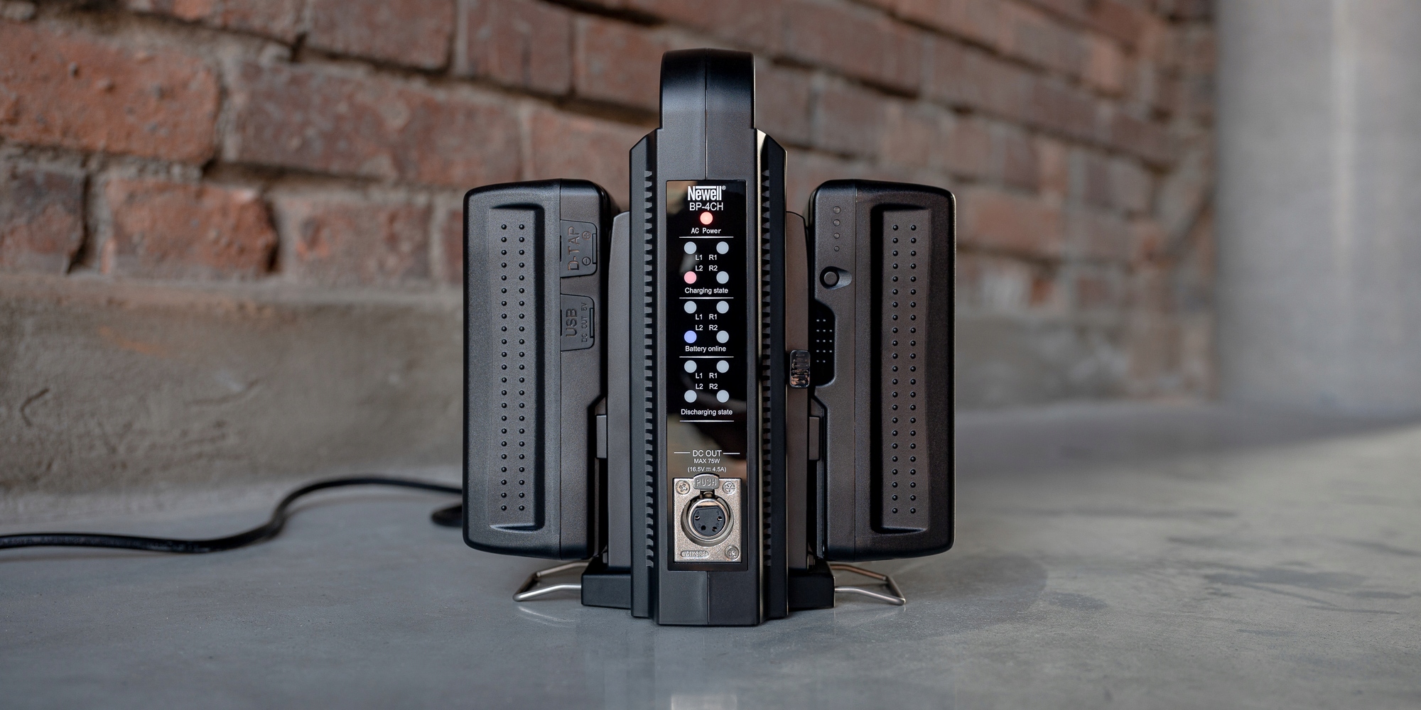- Чотириканальний зарядний пристрій Newell BP-4CH для батарей V-mount