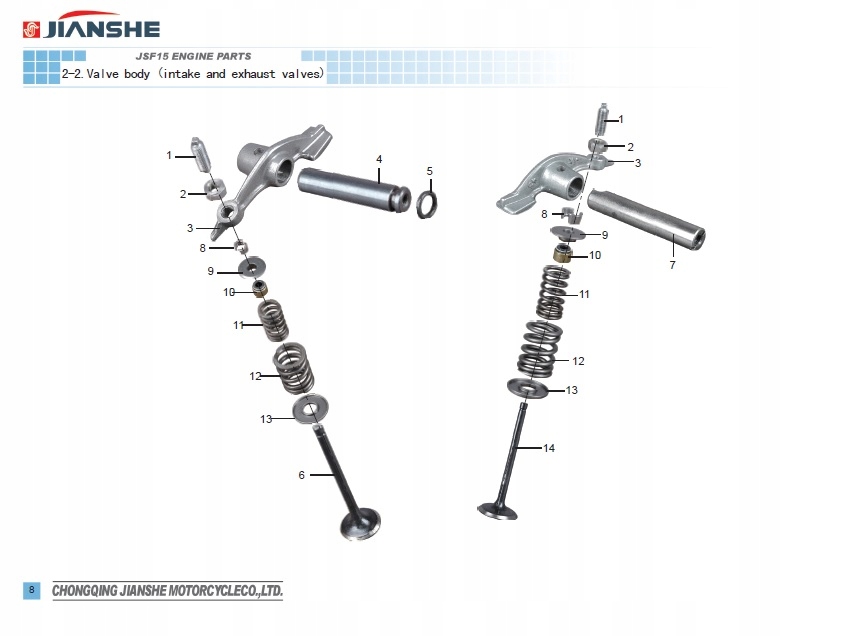 Набір для одного клапана ДЛЯ BS 250S-5 JIANSHE