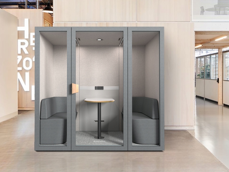 Сучасна звукоізоляційна акустична кабіна є абсолютною обов'язкою в сучасних інтер'єрах офісів відкритих просторів, офісів, аеропортів, готелів, університетів. Кабіна надає можливість проведення телефонних дзвінків або телеконференцій у зручних умовах, в яких ви можете зосередитись на розмові та вести її, не заважаючи колегам. Акустична кабіна з чотирьох особами забезпечує комфортне звукоізоляційне місце для проведення ділових зустрічей чи навчання. Засклені двері роблять кабіну надзвичайно легкою і прикрашають інтер’єр, в якому вона знаходиться. Комфортна та практична акустична каюта працюватиме в сучасному офісі, що характеризується інноваціями. Кабіна була виготовлена з високоякісної сировини, що забезпечує адекватну звукоізоляцію. Внутрішній дизайн та закінчення заохочуйте використовувати це зручне місце, коли виникає потреба.