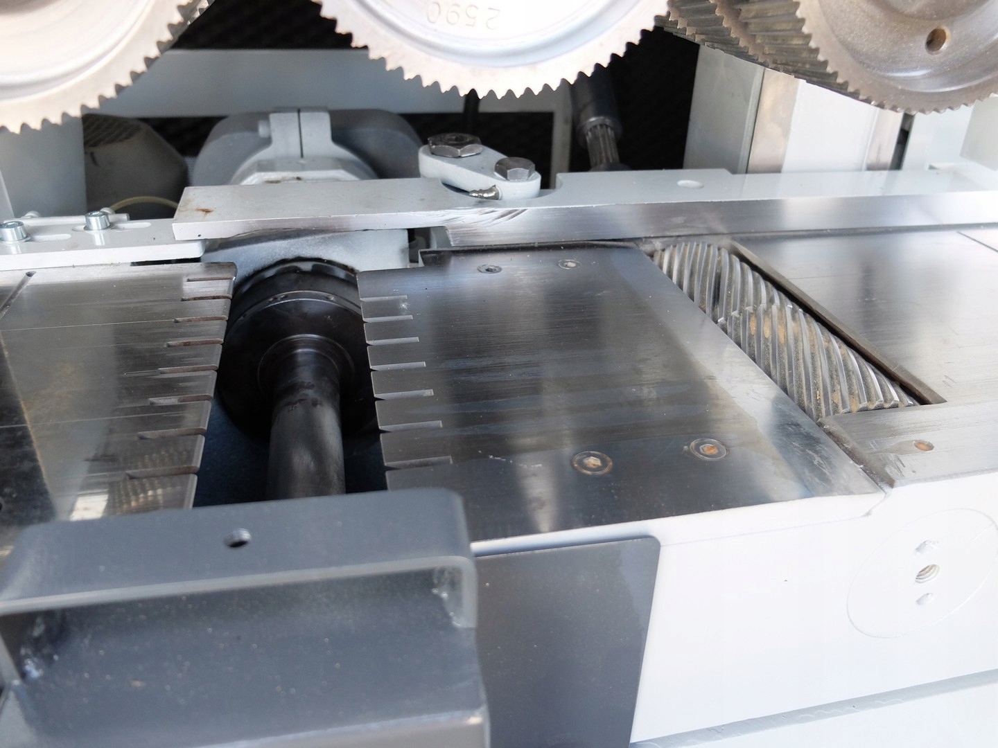 - Зубчастий, тягнучий і поворотний вхідний ролик у нижній частині стільниці
