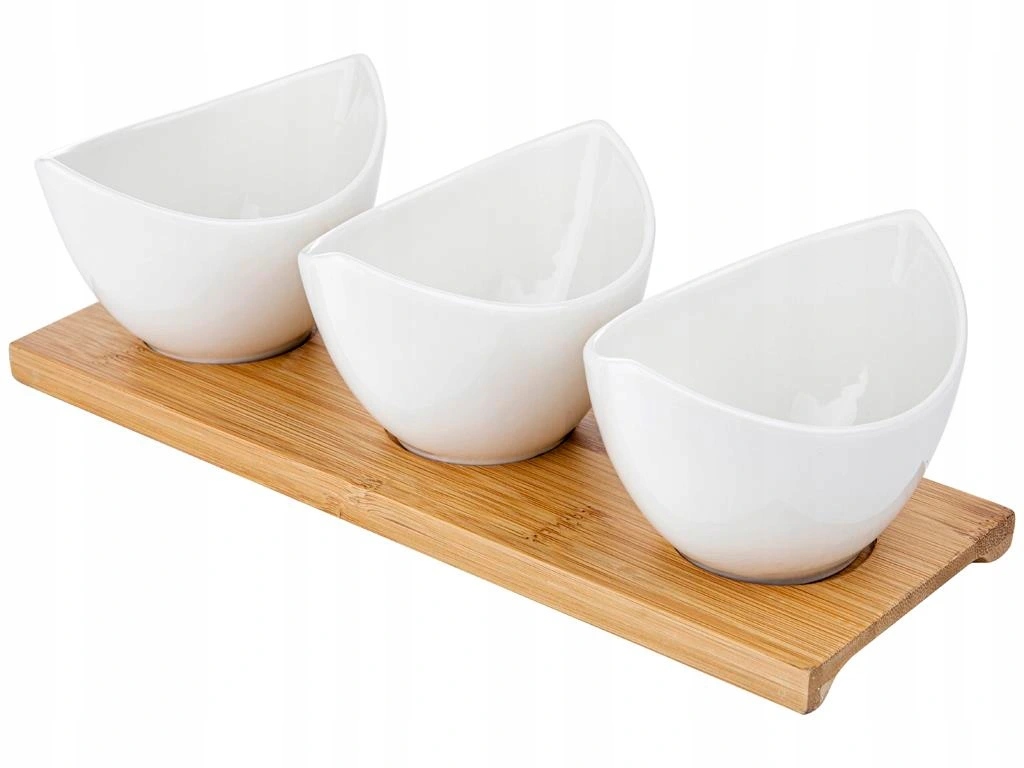 Дипчаші Adria забезпечують ідеальну подачу закусок на столі. Оригінальний, але простий візерунок. Виготовлений із міцної порцеляни New Bon China. Універсальність використання. Переконайтеся в ЕКО! Підставка з бамбукового дерева.