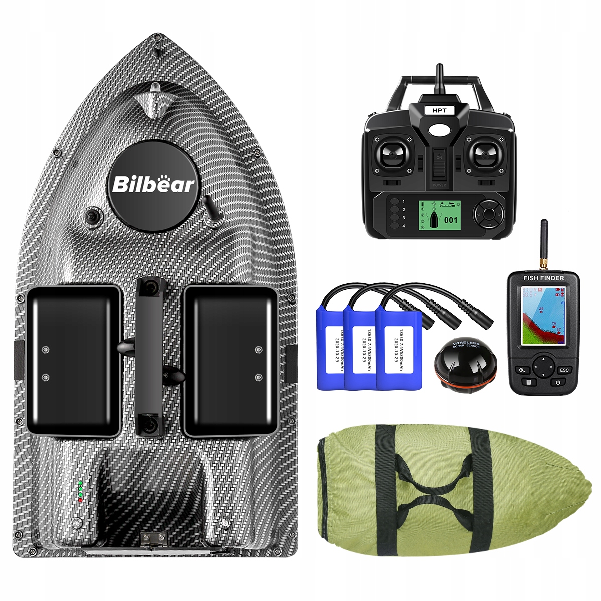 Човен для приманки GPS + рибошукач + 3 батареї + сумка
