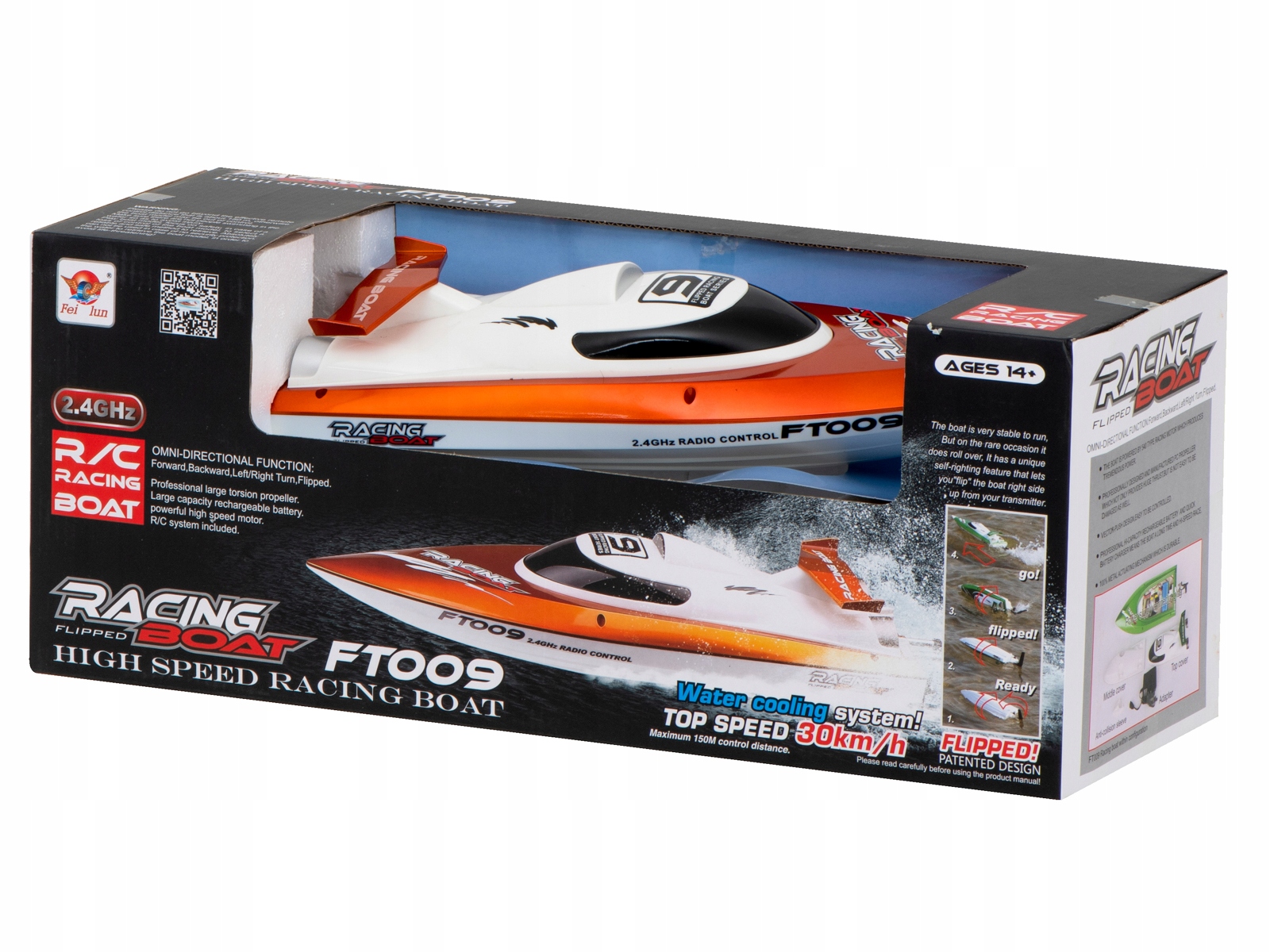 Модель FT009 — нова серед ударних іграшок. Відрізняється якісним і міцним виконанням. Дуже важливим елементом конструкції моделі є використовуваний в ній сервопривід, який дозволяє обертати катер без зниження швидкості (у попередніх моделях повороти залежали від зміни потужності двигуна). . Модель оснащена передавачем 24 ГГц (менше перешкод і більший діапазон).