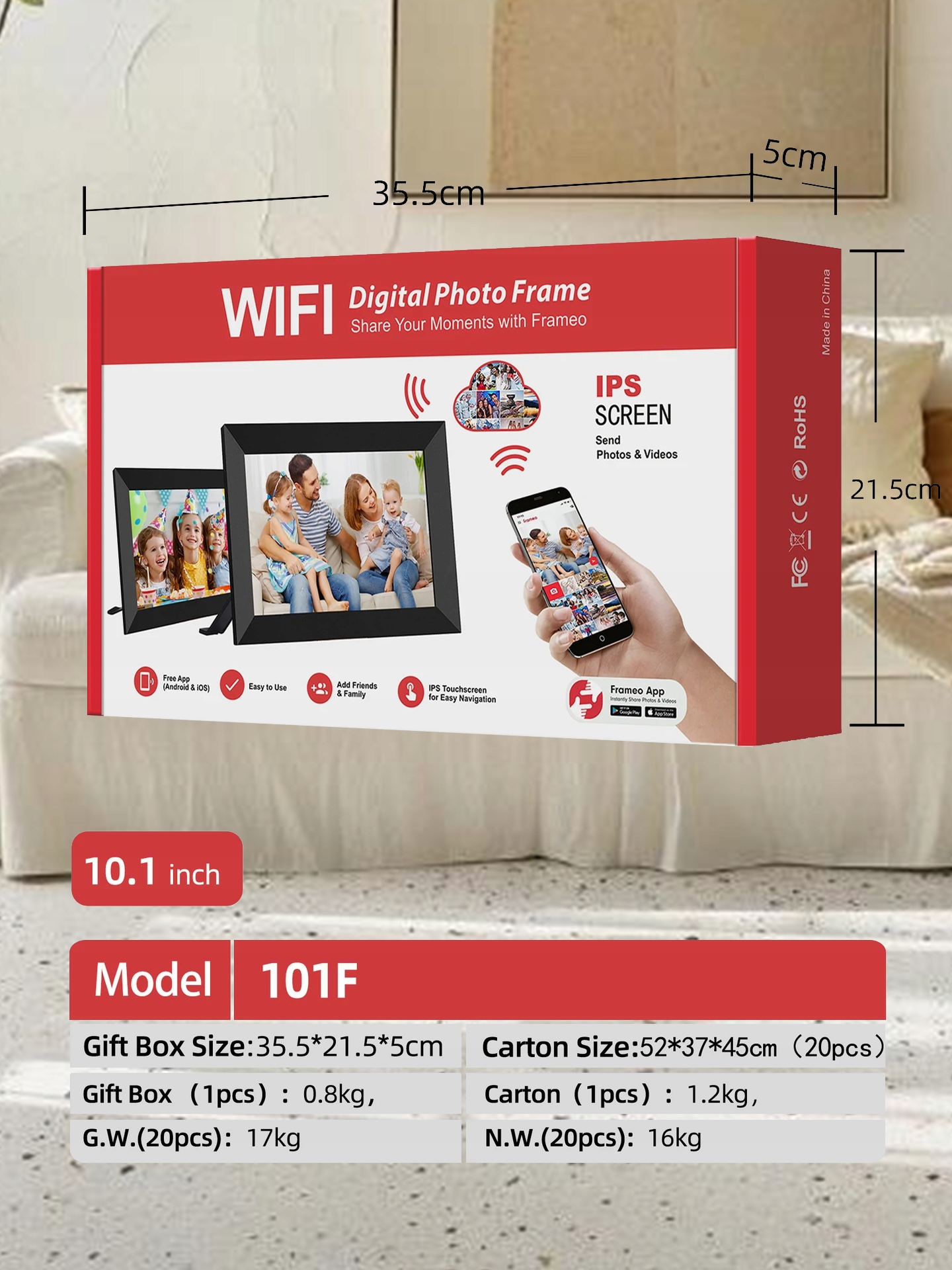 - 4. 10,1-дюймовий цифровий фоторамент з екраном високої роздільної здатності 1280 x 800 світлодіод (16:10) чітко видно з точки зору 178 градусів. Сенсорний екран дозволяє встановити рамку та зручний вигляд фотографії.