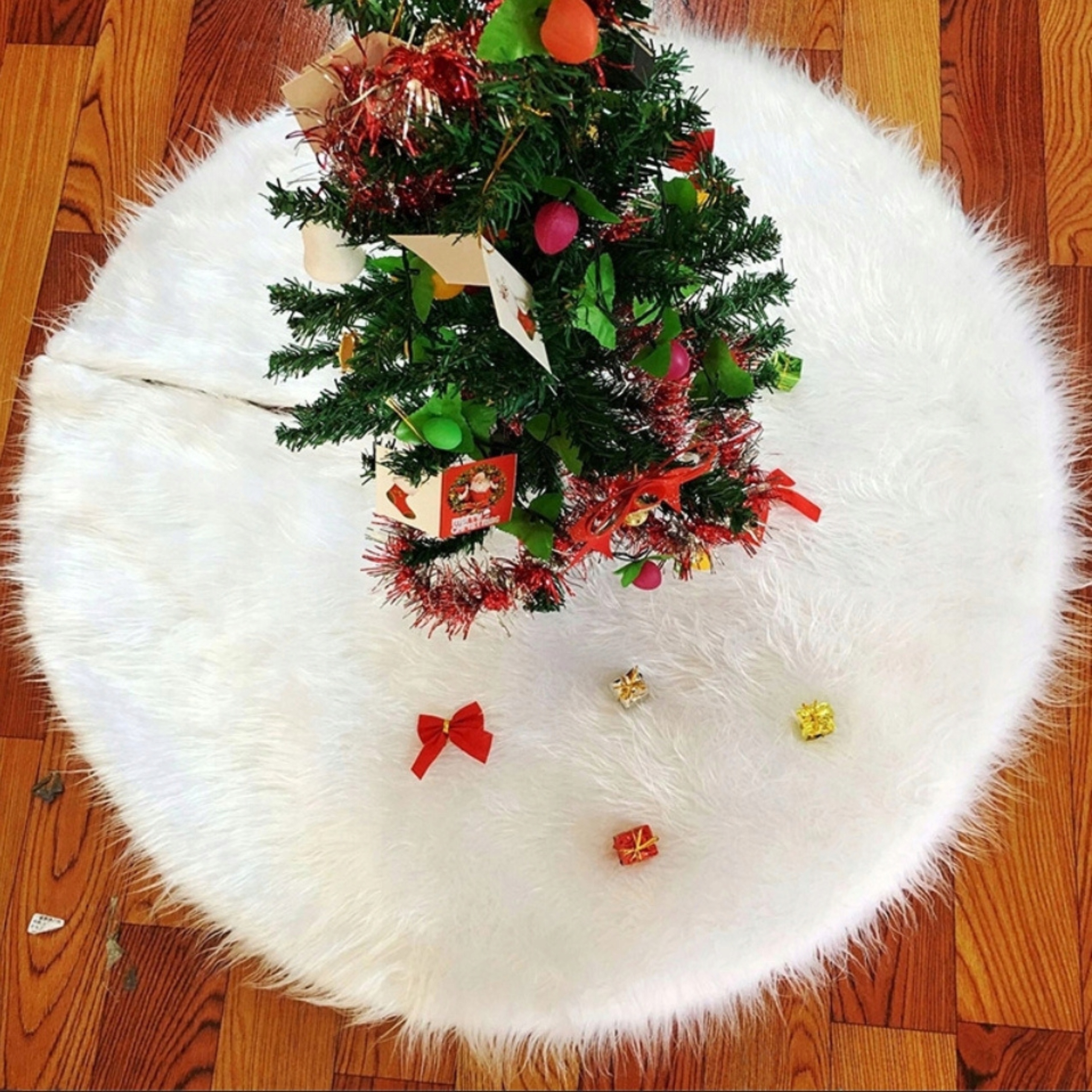 CHRISTMAS TRERE CARPET Ялинковий килимок, білий, круглий хутряний килимок, великий, 90 см
