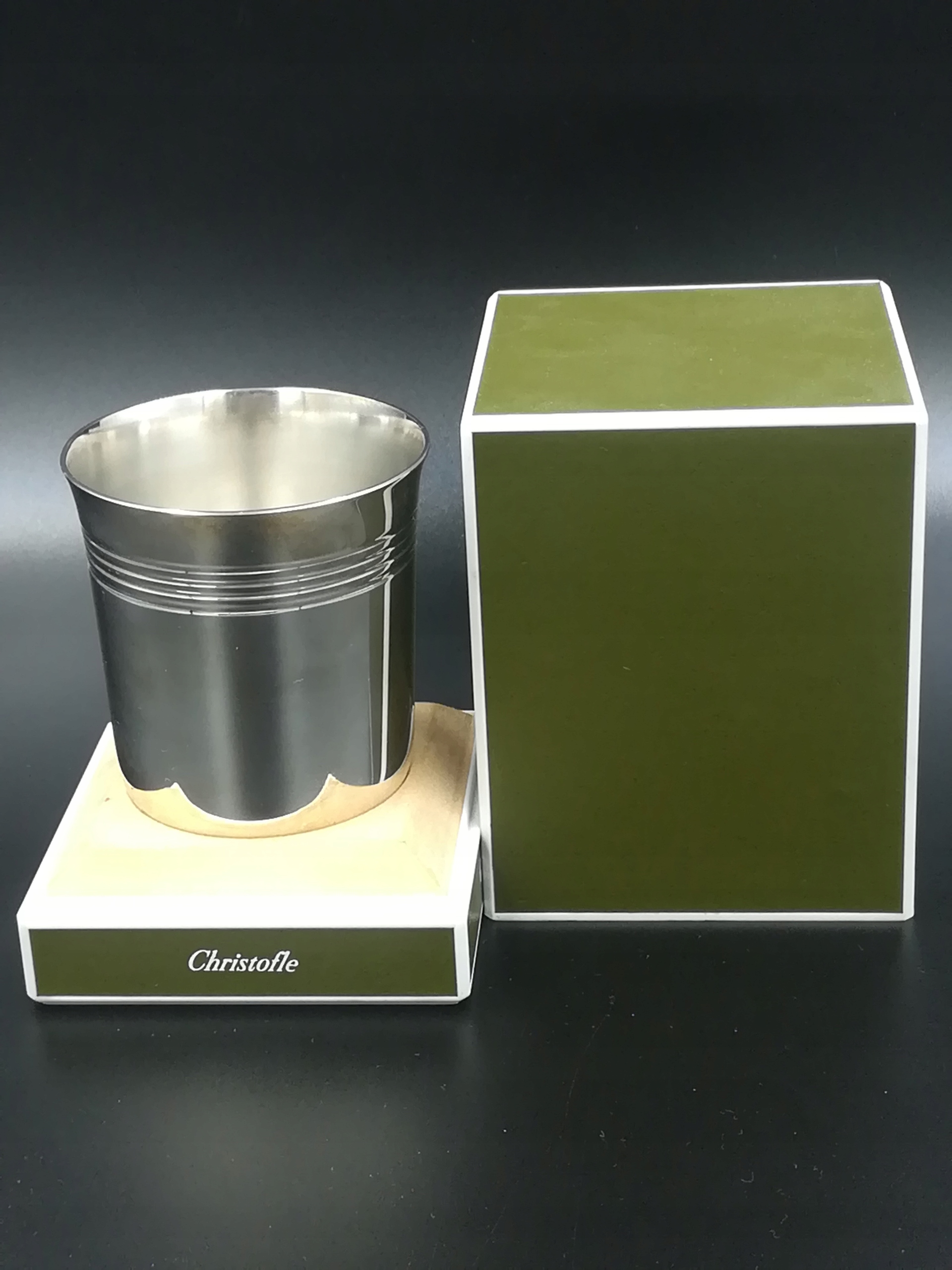 Чарівна посріблена кухоль від французького бренду Christofle. Чашка походить з 1930-х років, зберігаючи стиль ар-дека, популярний сьогодні. Виріб може стати незабутнім подарунком для дитини з нагоди народження або хрещення. Завдяки стриманому декору, у вигляді різко окреслених паралельних ліній, кухоль можна прикрасити привабливим гравіюванням, яке стане незабутнім сувеніром.