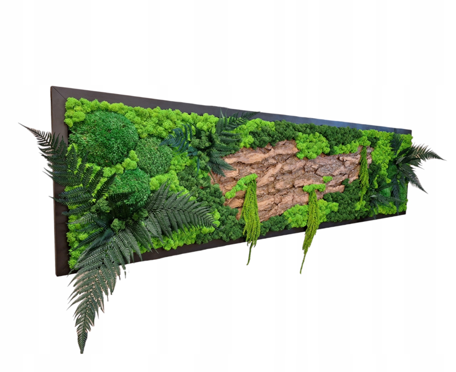 CHROBOTEK, НАТУРАЛЬНИЙ МОХ КАРТИНА 164x44X5см, ЧОРНА МАТОВА РАМА