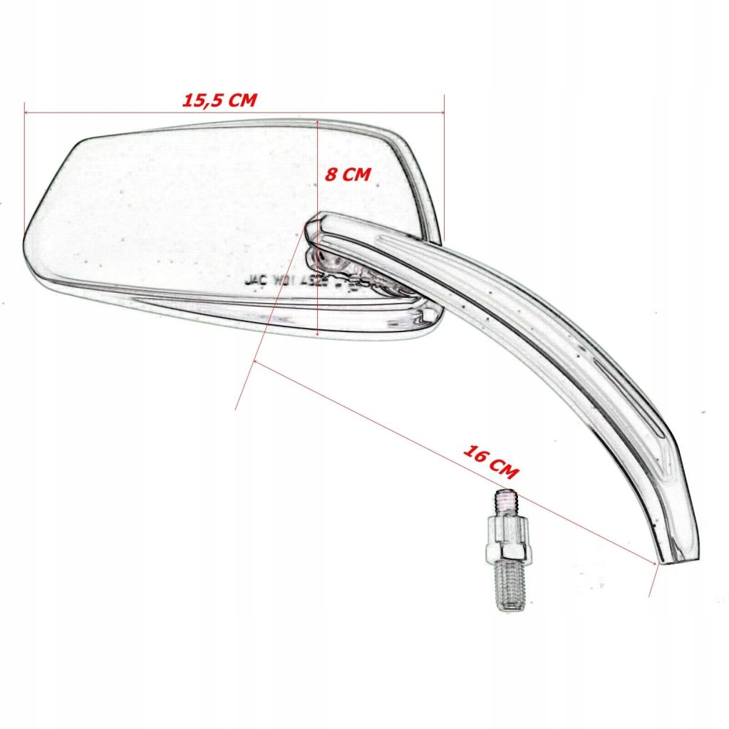 - При виборі дзеркал для вашого мотоцикла враховуйте розміри дзеркала та розміру нитки. На польській ринку в даній моделі мотоциклів часто встановлюються колеса аксесуарів, і вводиться багато модифікацій. Перевірте, який розмір і тип нитки у вас є в дзеркальних ручках. Враховуйте довжину дзеркальної руки з їх ручок, ширину та форму керма та ваше положення на мотоциклі.