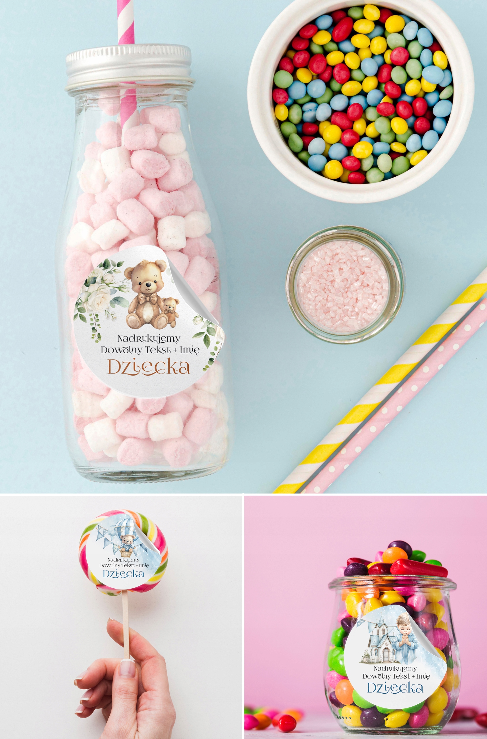 CHRZEST, NA ROCZEK URODZINY - NAKLEJKI LIZAKI MIÓD CIASTO DLA GOŚCI [WYBÓR]