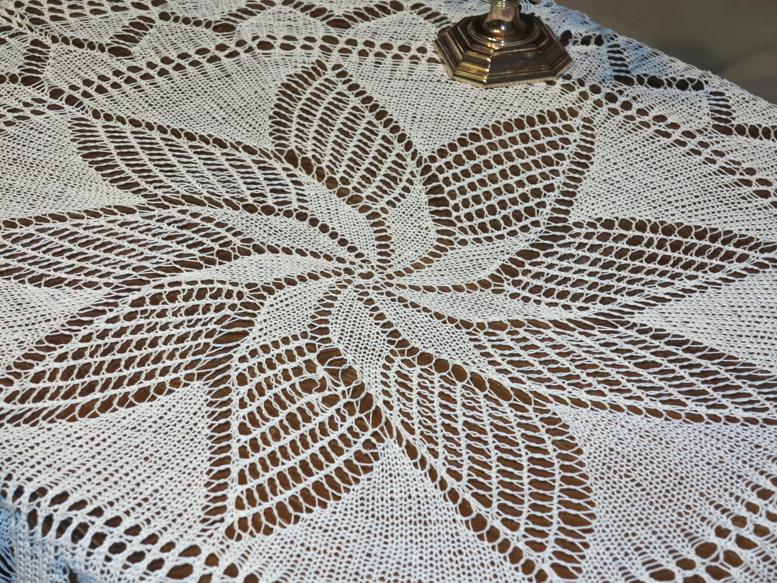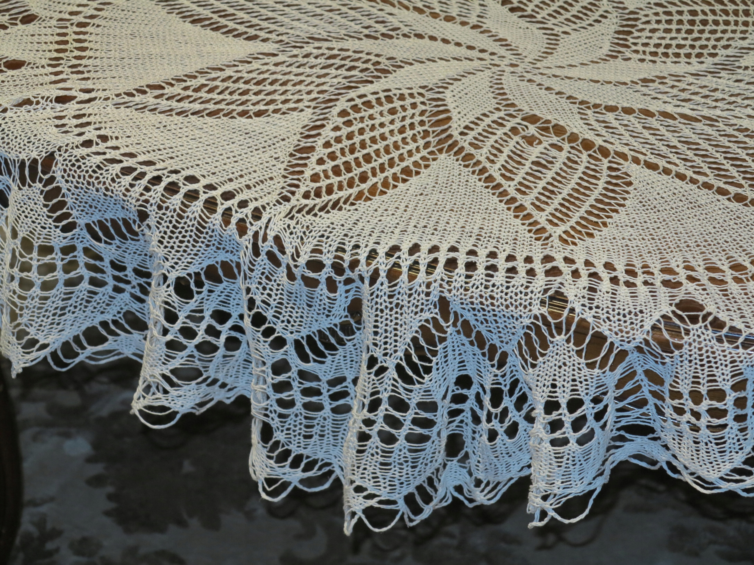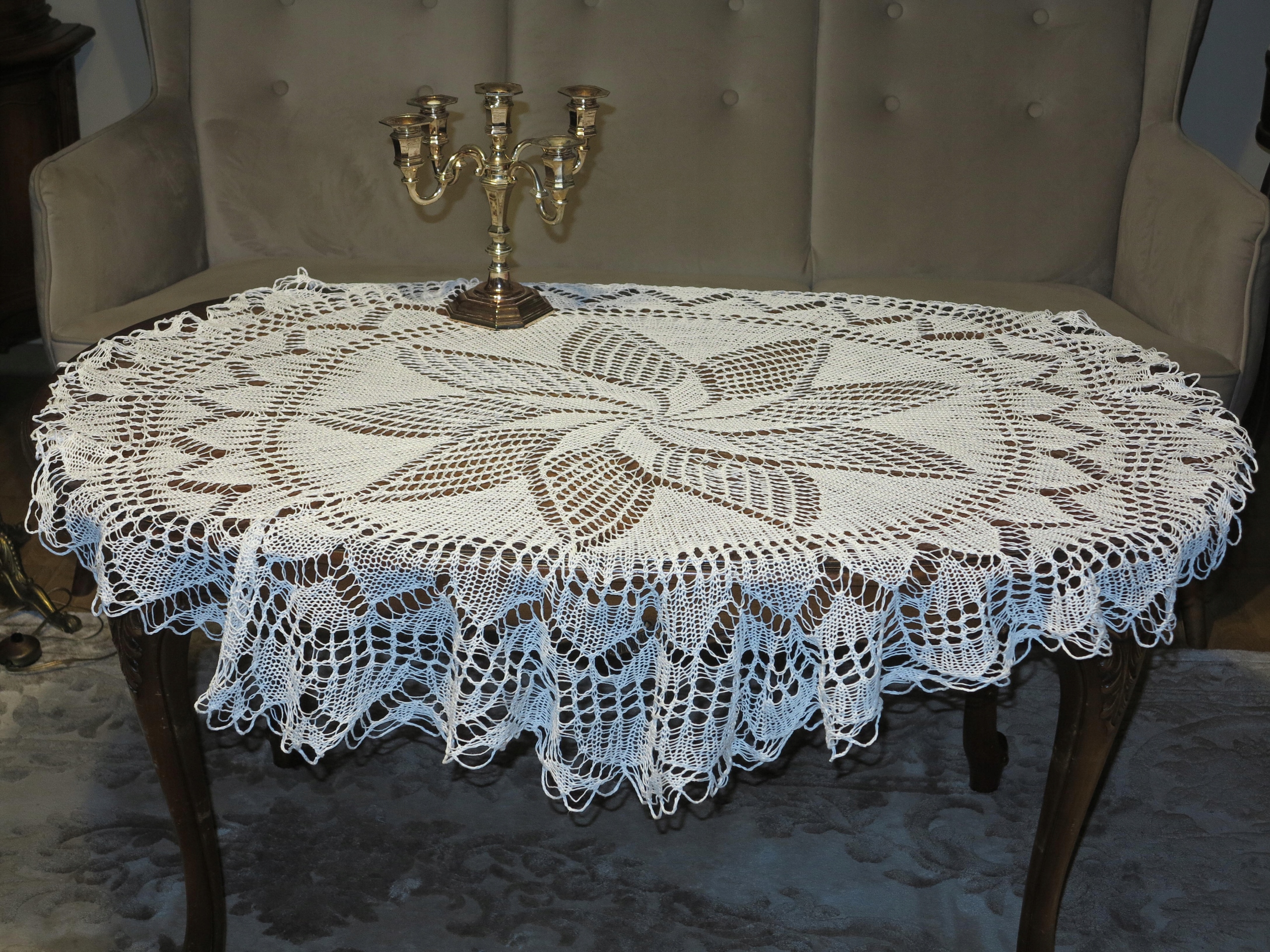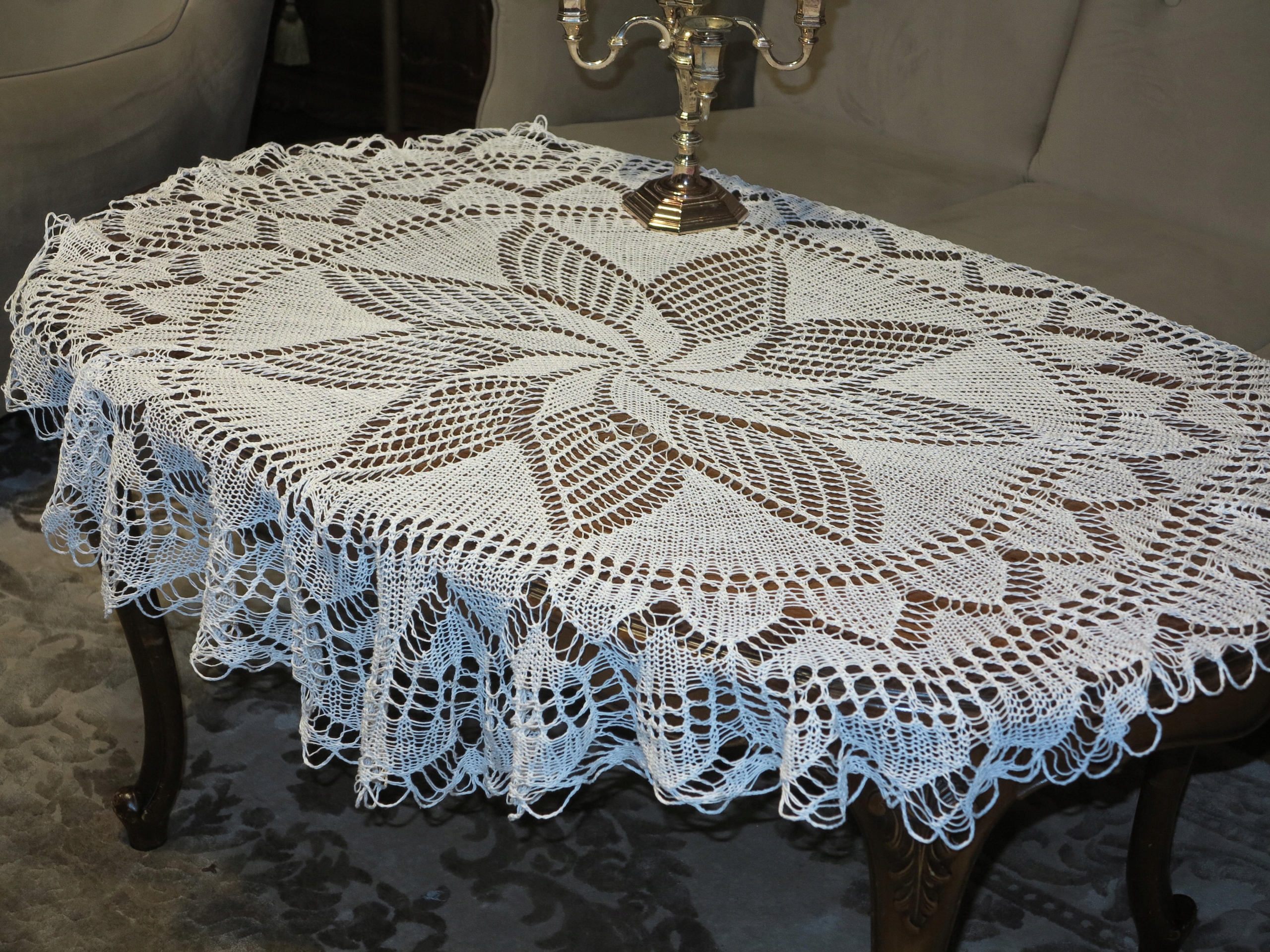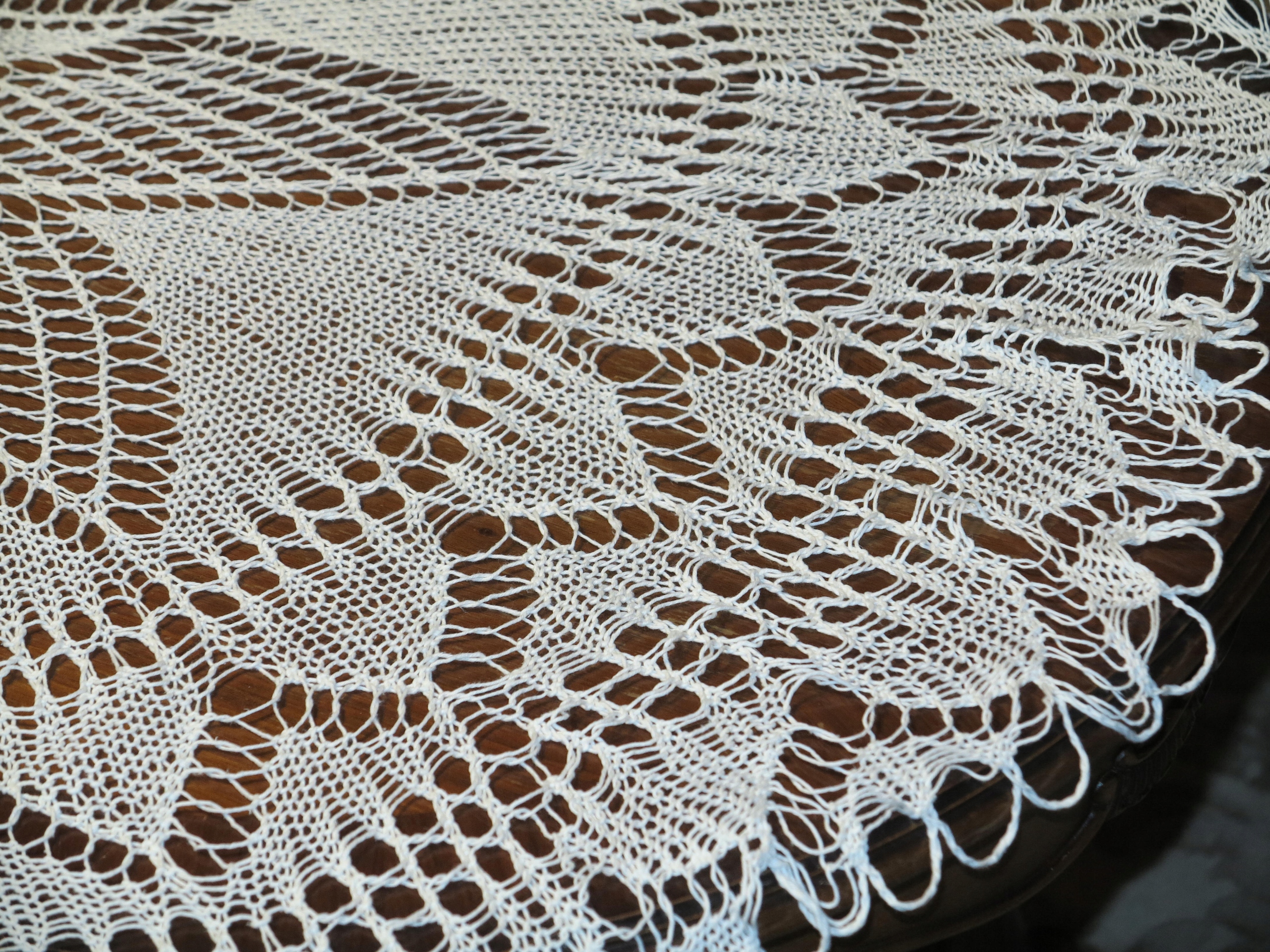 ВИНЯТКОВО ГАРНУ БІЛУ СКАТЕРТИНУ, ручного в'язання, з бавовняних ниток.