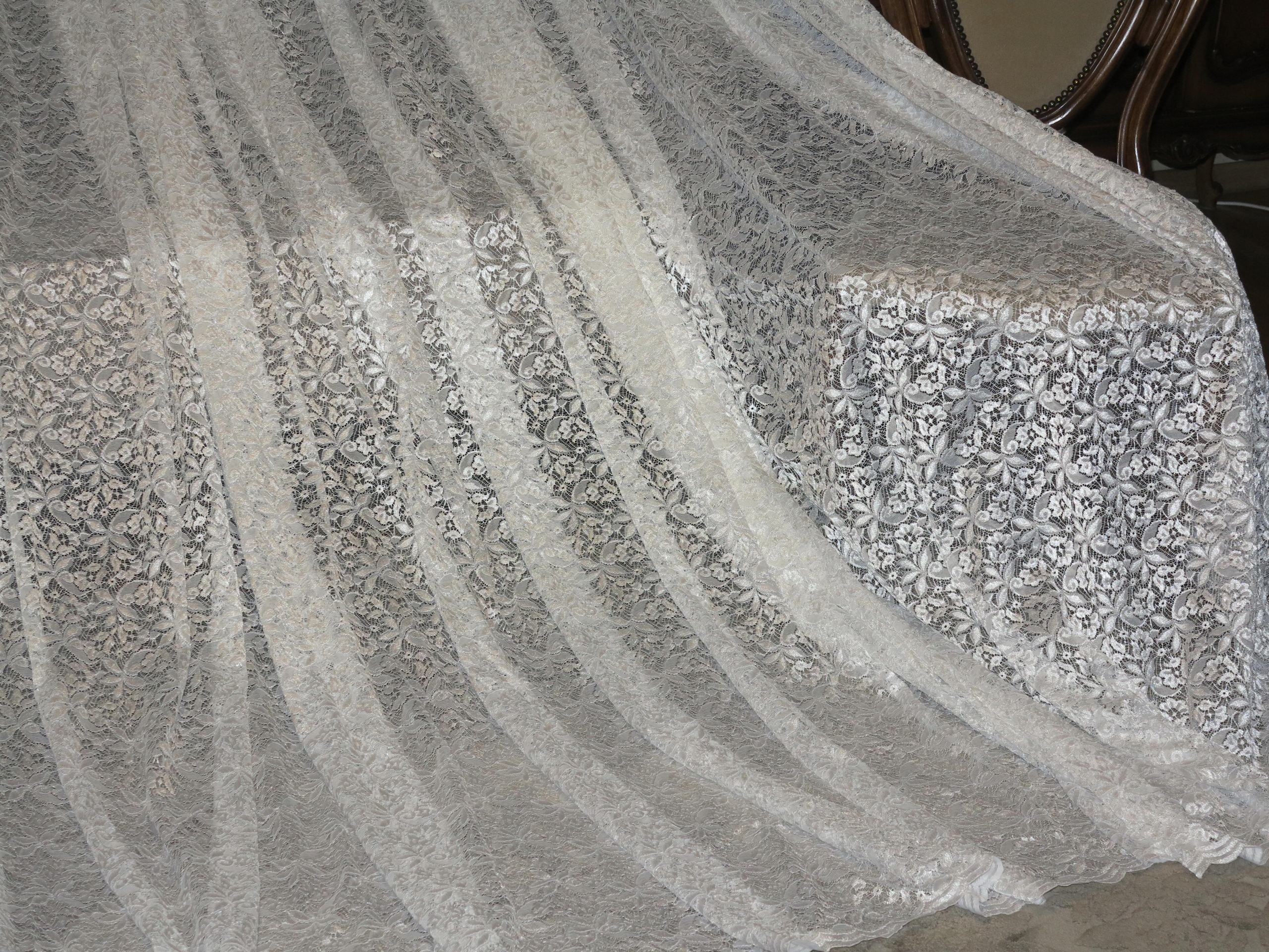 НАДЗВИЧАЙНУ КРАСИВУ БІЛОСНІЖНУ АНГЛІЙСЬКУ ШТОРУ ПОВНІСТЮ З ЯКІСНОГО, СУЦІЛЬНОГО МЕРЕЖИВА В ВІЗЕРУНКІ З ПЕРЛАВНИМ БЛИСКОМ. НИЗ ОБРОБЛЕНИЙ НІЖНОЮ ХВИЛЕВОЮ СТРІЧКОЮ