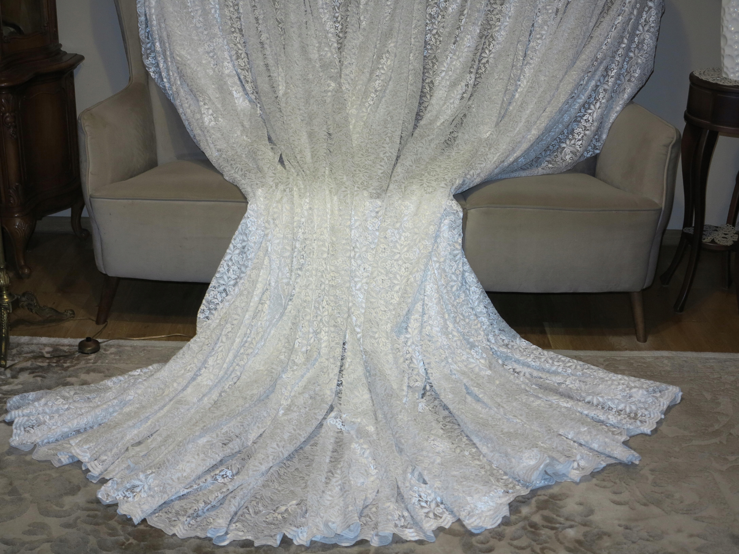 Предмет аукціону виключно красива, біла мереживна штора, дуже зручна у використанні. Штора має розміри: ширина внизу 800см, висота 249см. Штора б/в, у відмінному стані. Щиро рекомендую.