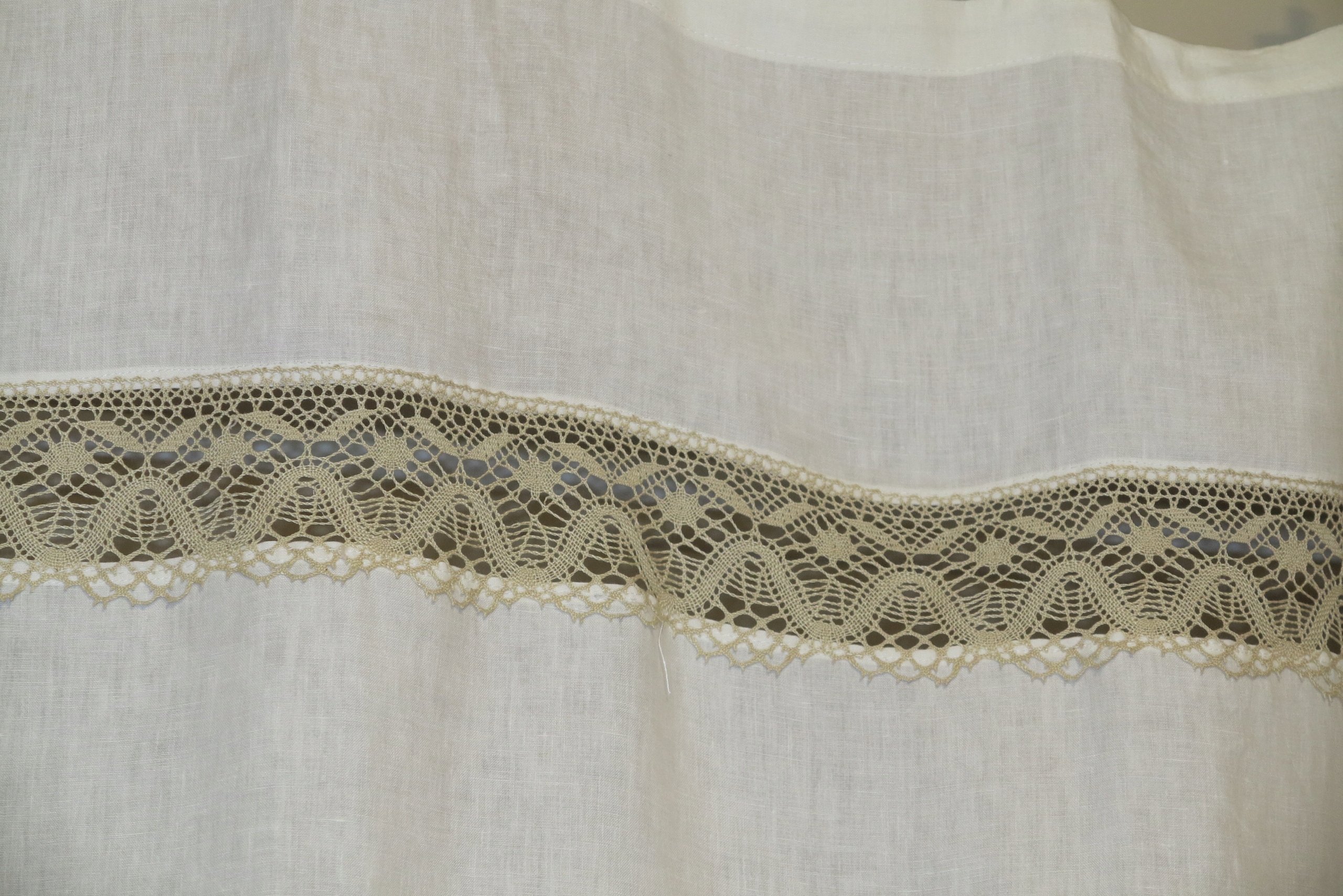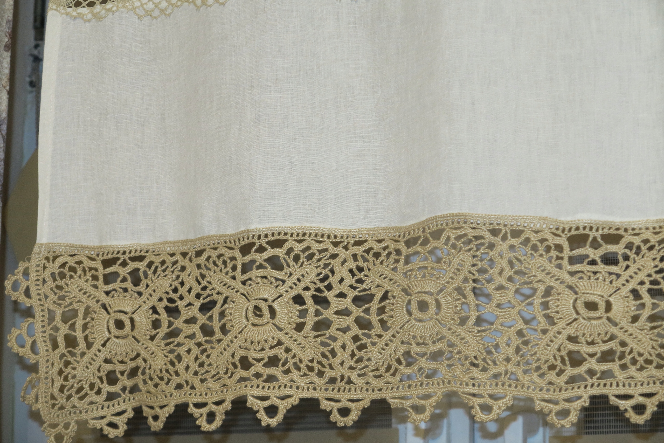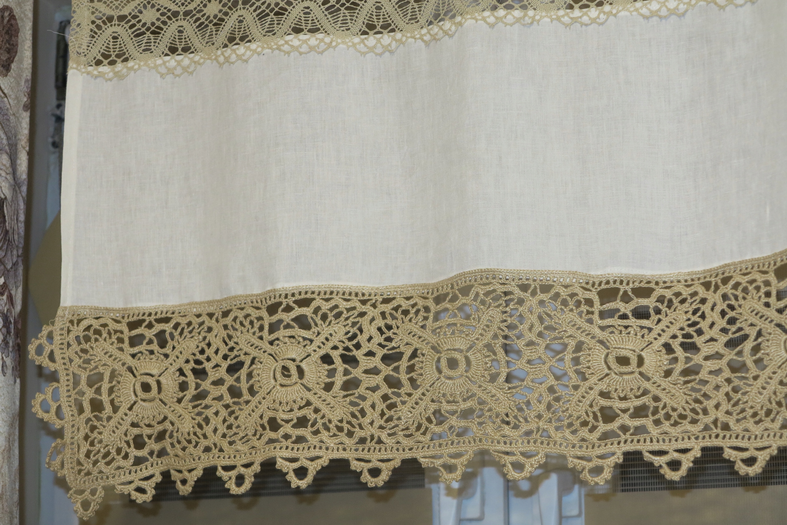 Предметом аукціону є виключно декоративна , широка штора або портьєра, низ з товстої бавовни гачком, ручна в'язка. Тканина - чистий льон, декорована вставкою з коклюшного мережива. Його розміри: ширина: 130 см, висота: 77 см. Штора б/в, але в дуже хорошому стані та якості. Я рекомендую. На сусідньому аукціоні пропоную дві майже однакові штори.