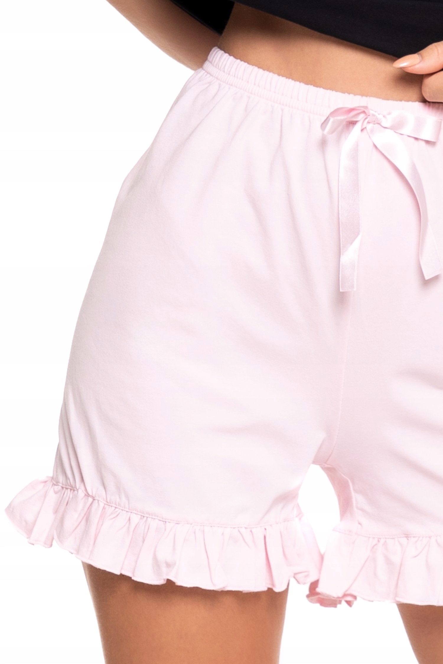Рожеві короткі шорти з бантом надають комплекту легкий і дівочий характер. Спеціальна версія plus size адаптується до фігури, забезпечуючи комфорт і повний тепловий комфорт.