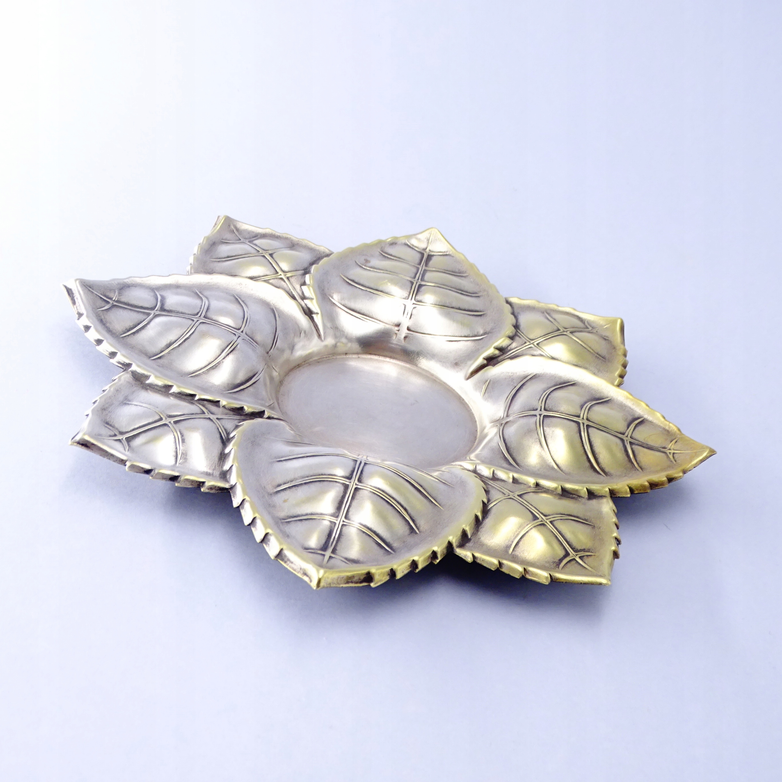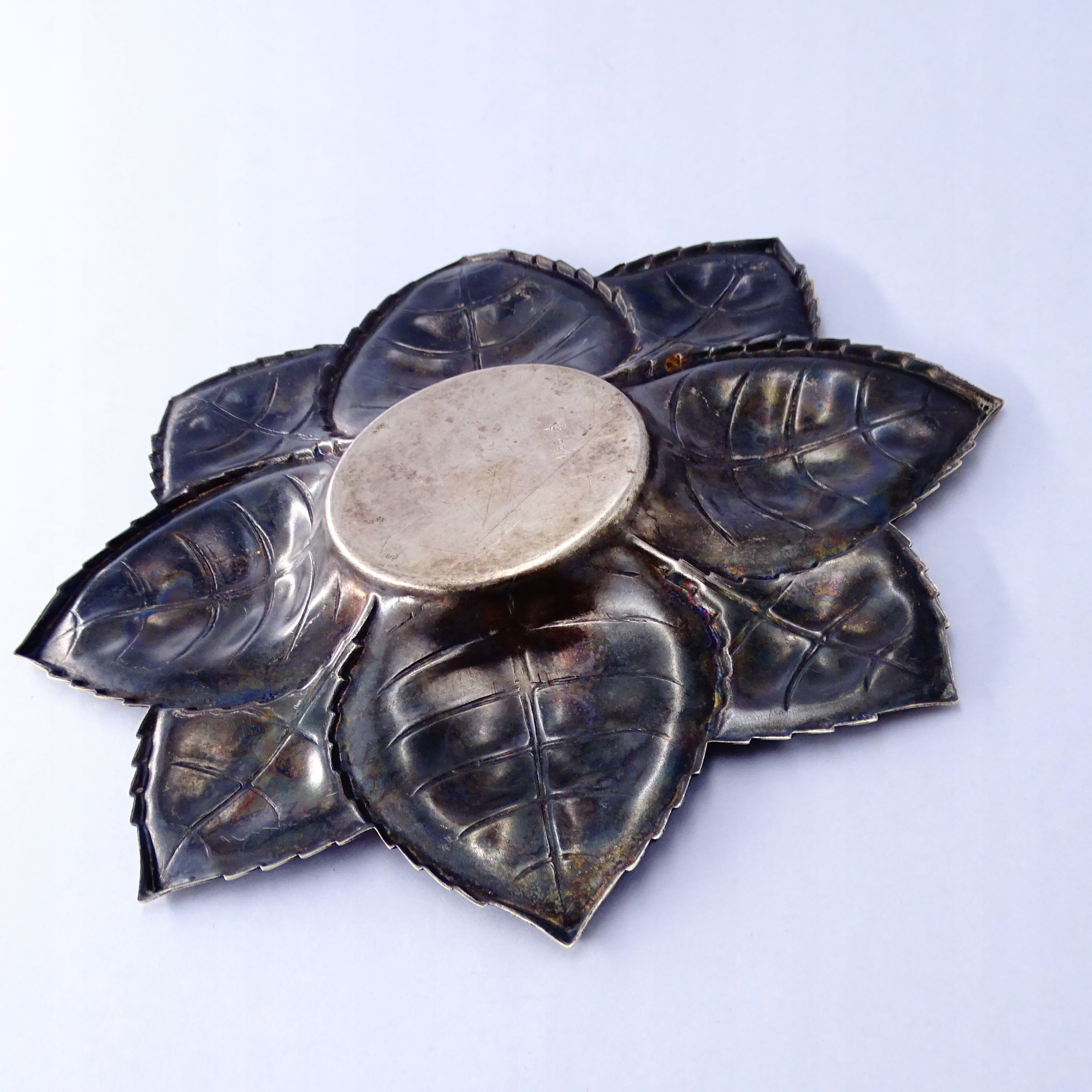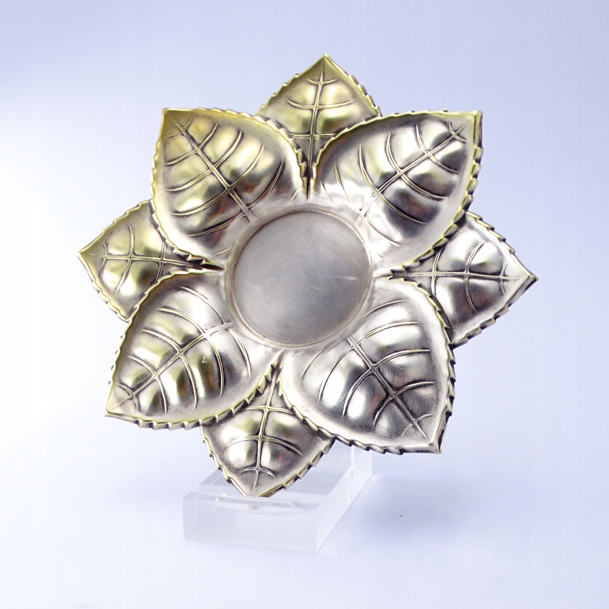 PIĘKNA ZABYTKOWA SREBRZONA PODSTAWA STOŁOWA LIŚĆ