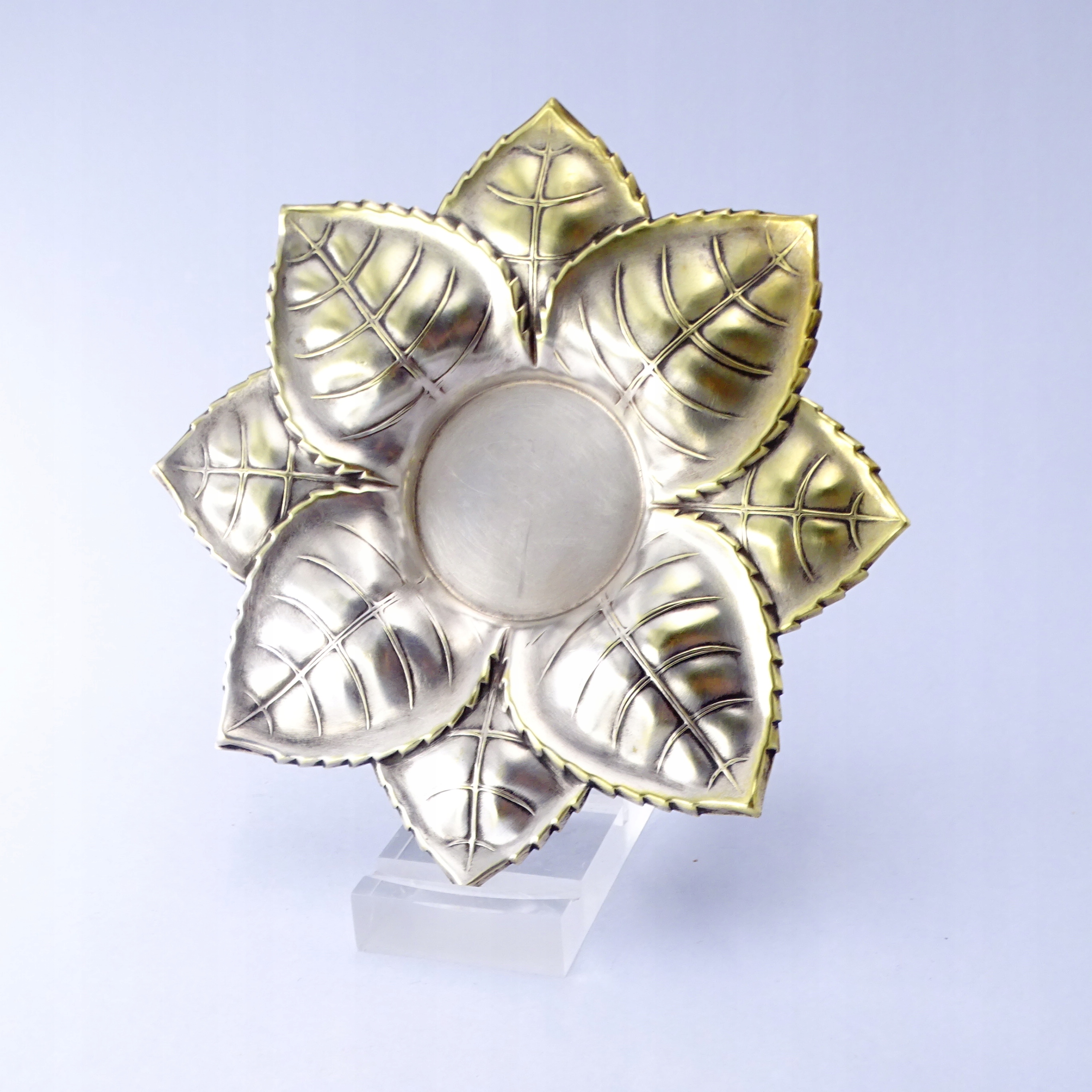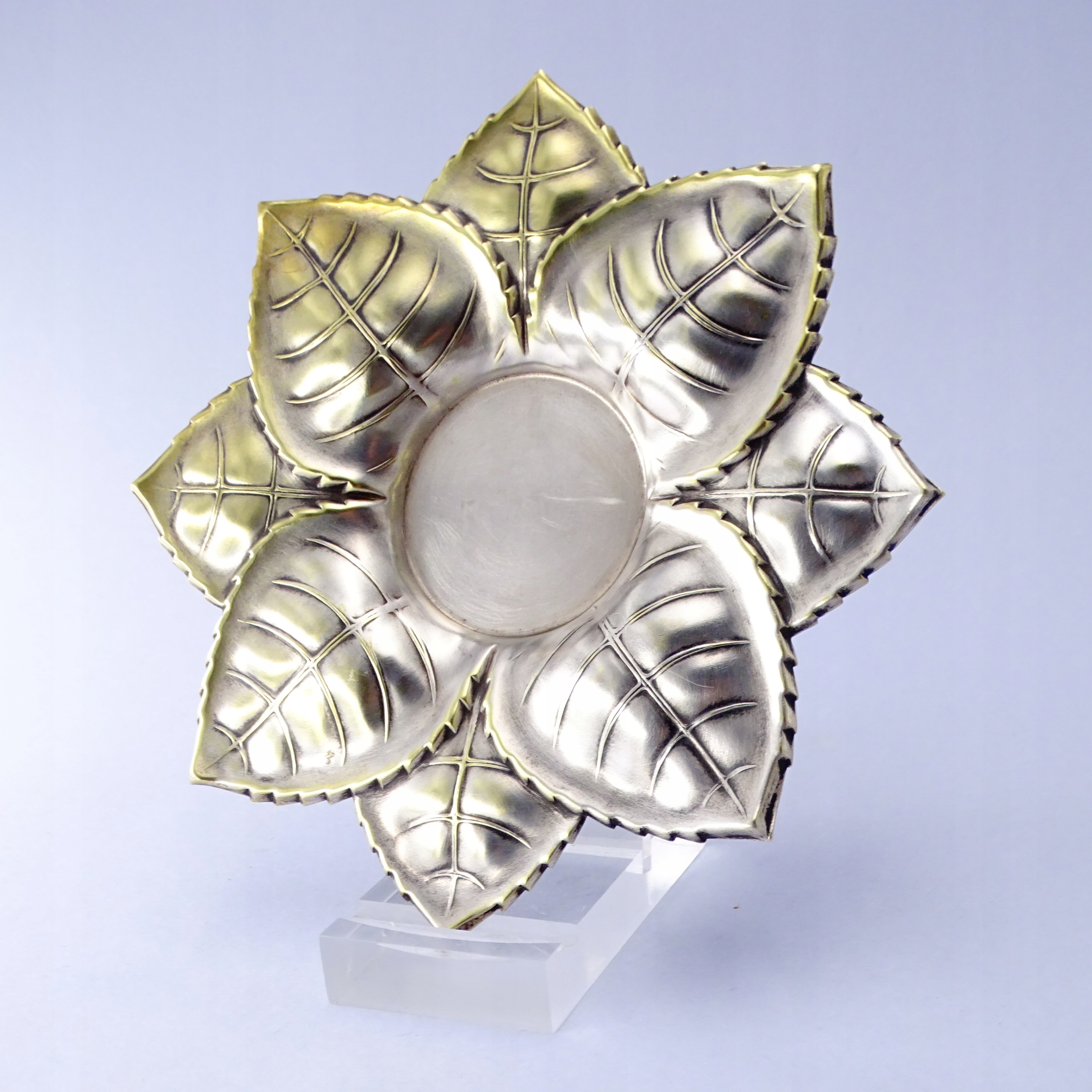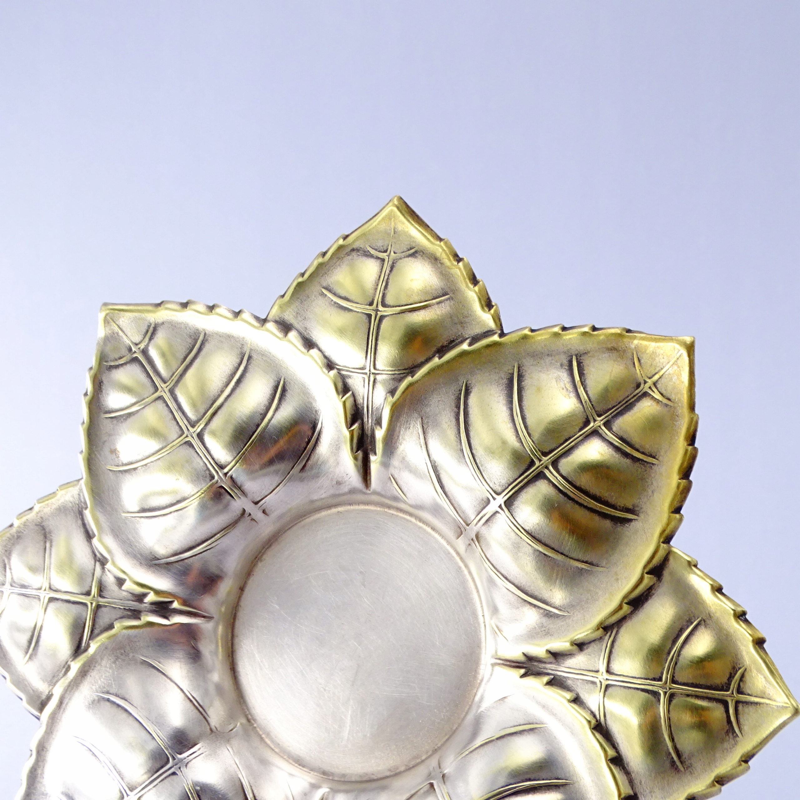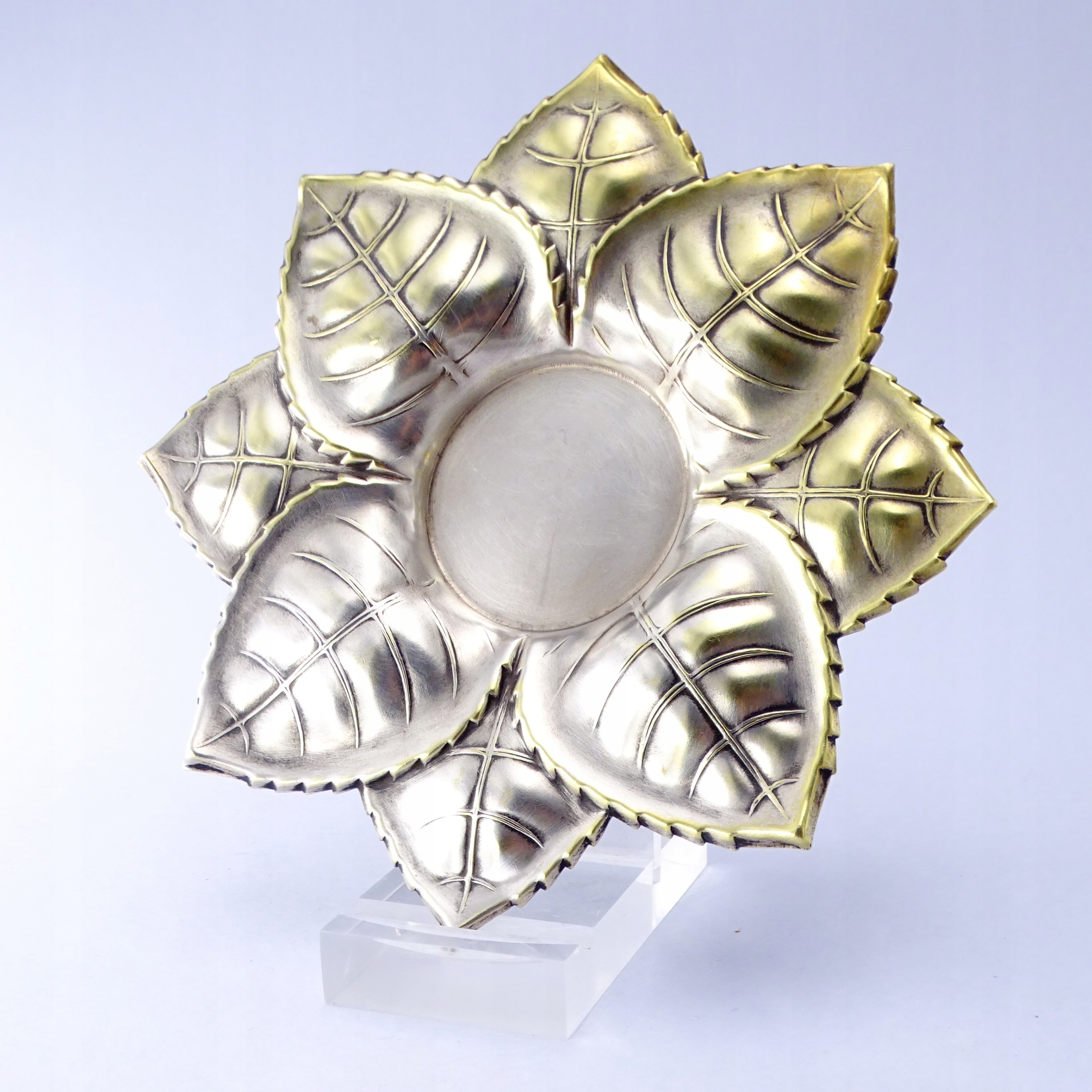 PIĘKNA ZABYTKOWA SREBRZONA PODSTAWA STOŁOWA LIŚĆ