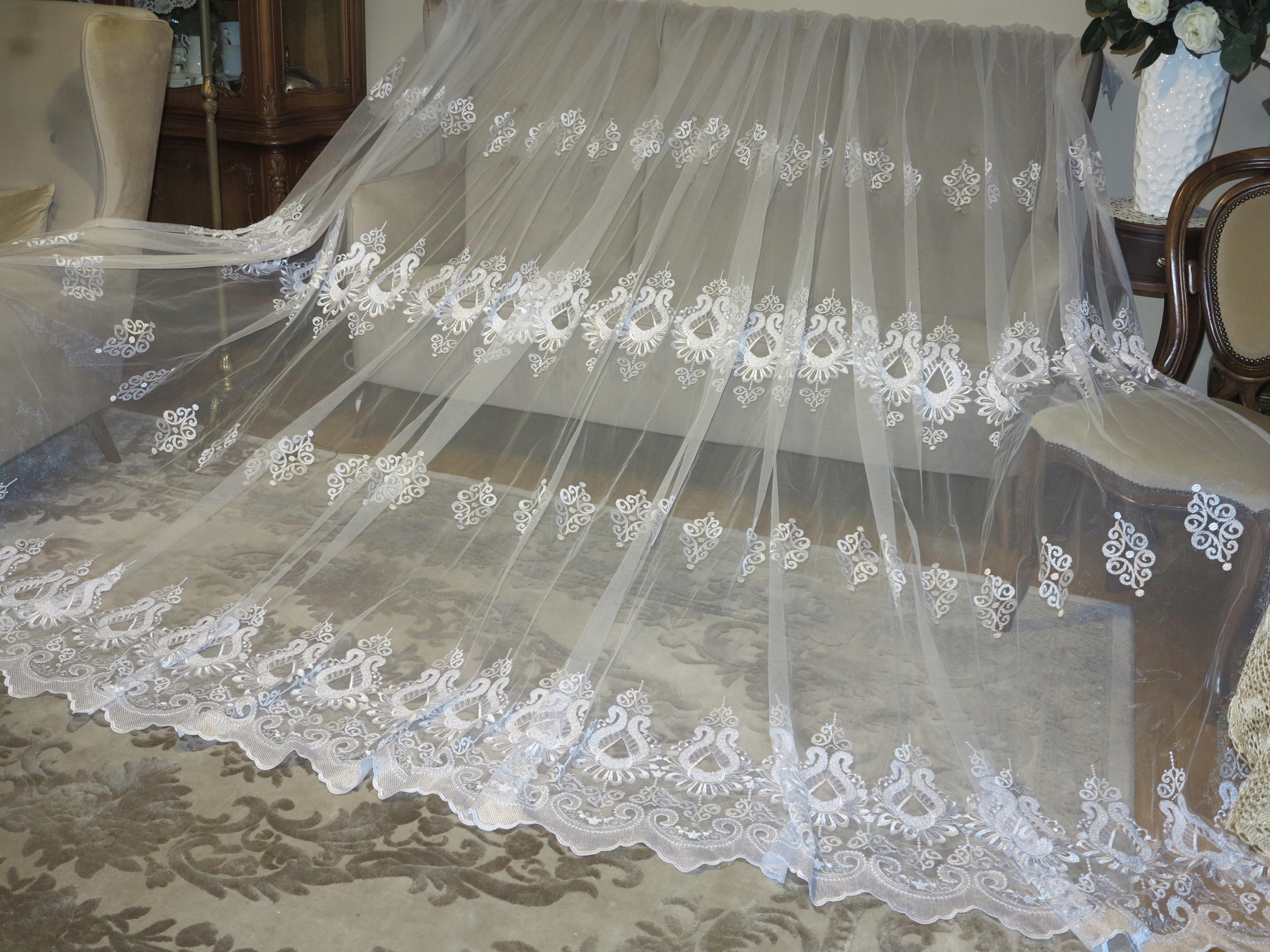 ЧУДОВУ ШИРОКУ БІЛУ ТЮЛЕВУ ФОРДИНУ, ПРИКРАШЕНУ БАГАТОЮ ДУЖЕ ДЕКОРАТИВНОЮ ВИШИВКОЮ. . ШТОРА, ДУЖЕ ДЕЛІКАТНА НА ВИГЛЯД ТА ВИСОКА ЯКІСТЬ.