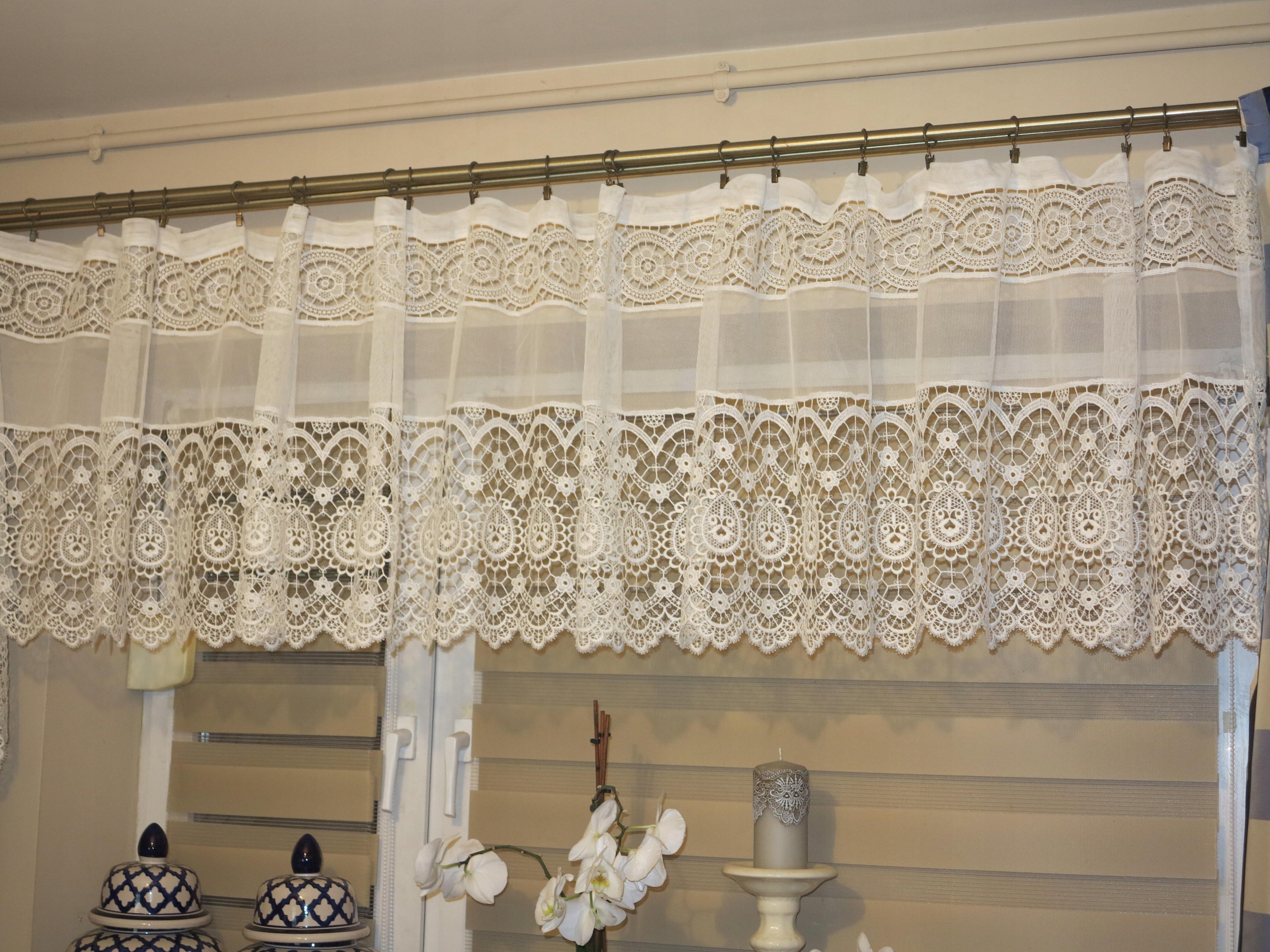 Предметом аукціону є декоративна штора з бавовняним гіпюром. Його розміри: 395 см, висота: 62 см. Б/у, але в супер хорошому стані та якості. Рекомендую.