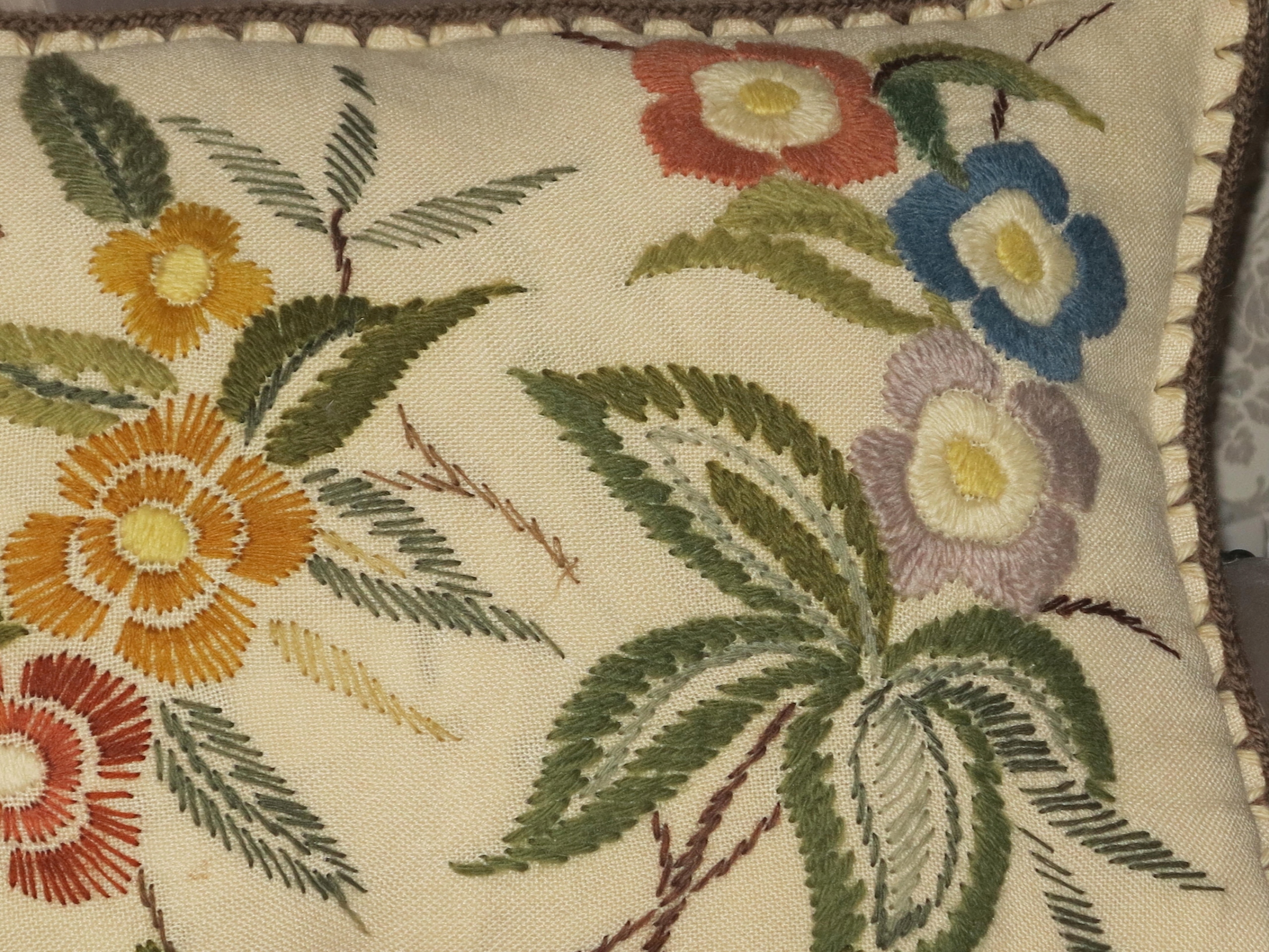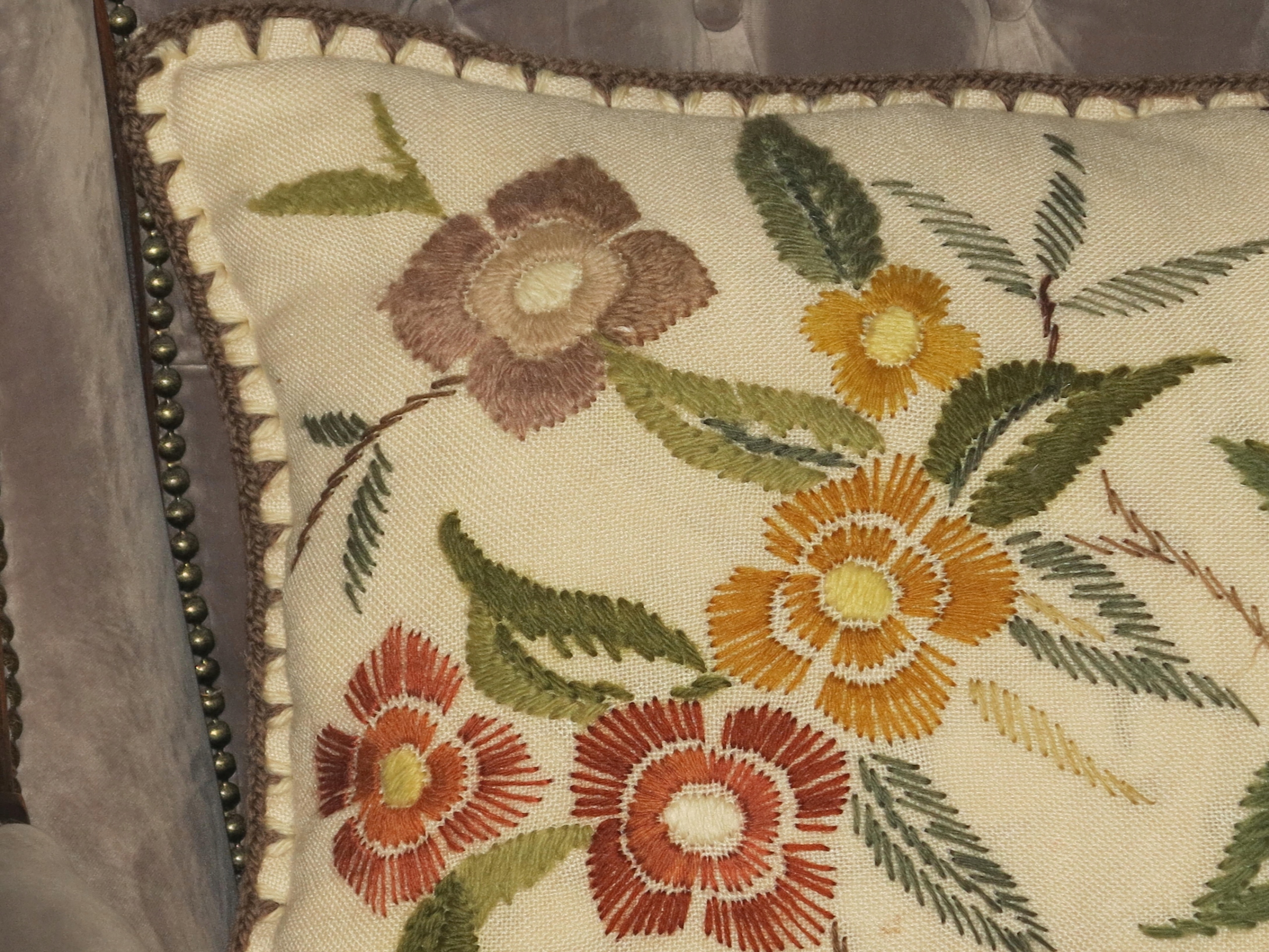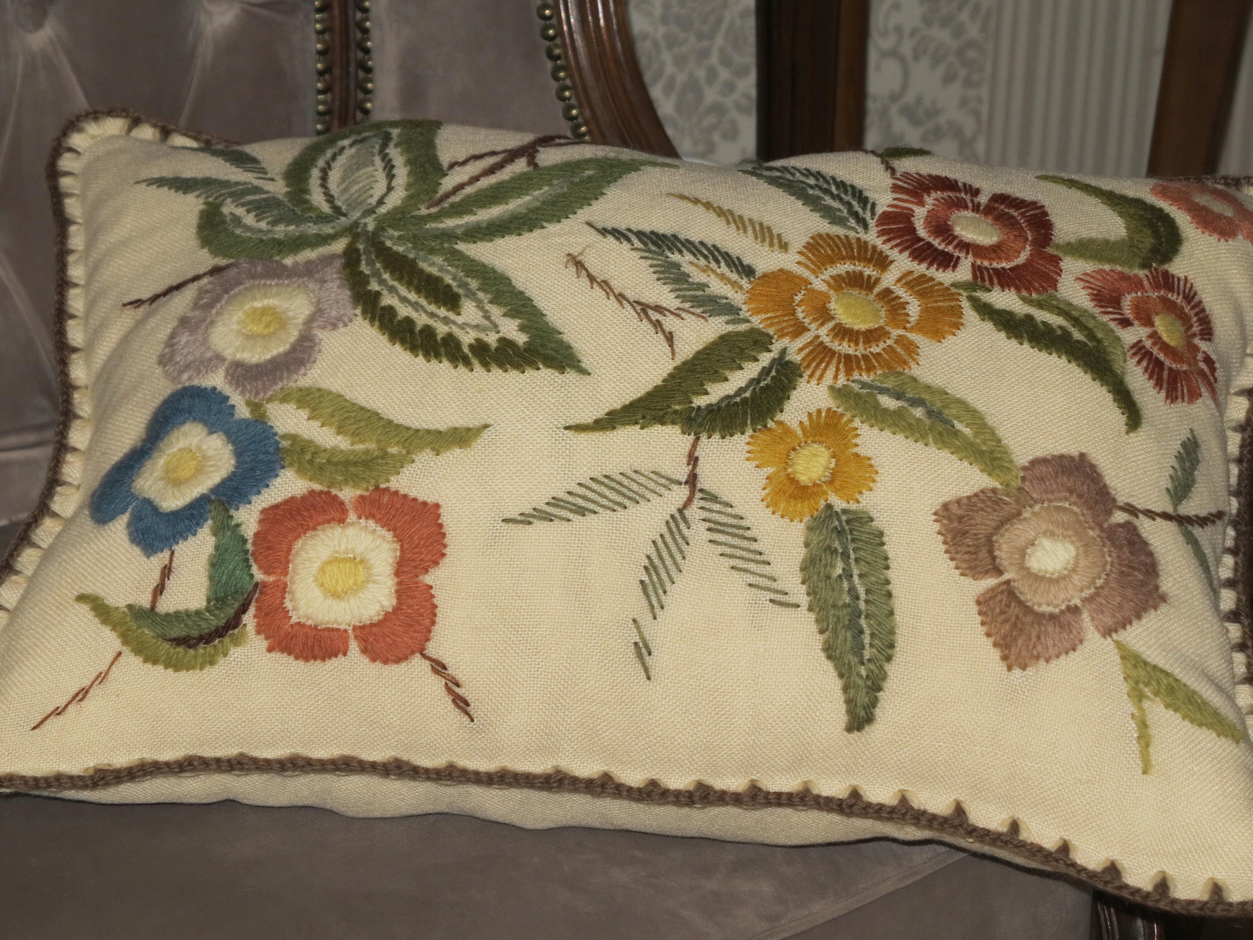 НА АНТИКВАРІАТ - НАДЗВИЧАЙНО КРАСИВУ СТИЛЬНУ ВЕЛИКУ ПОДУШКУ З РУЧНОЮ ВИШИВКОЮ ВЕРСТЬЮ, З НАПОВНЮВАЧОМ