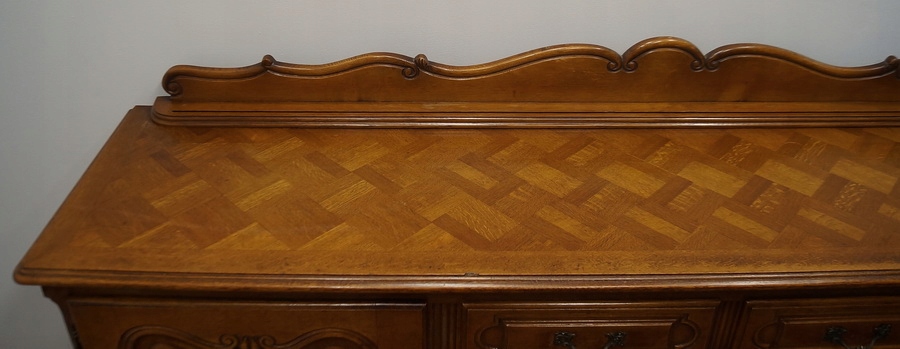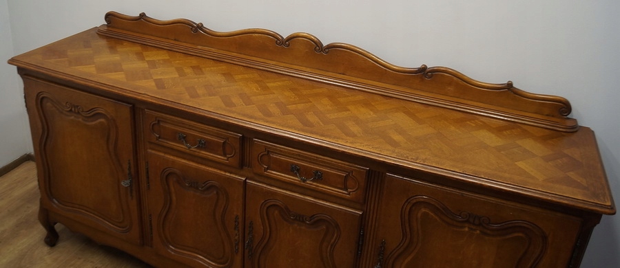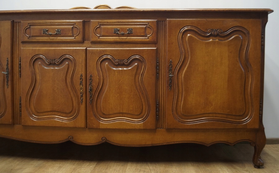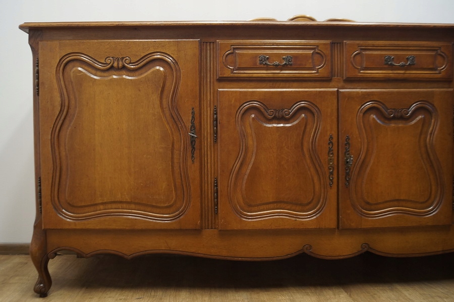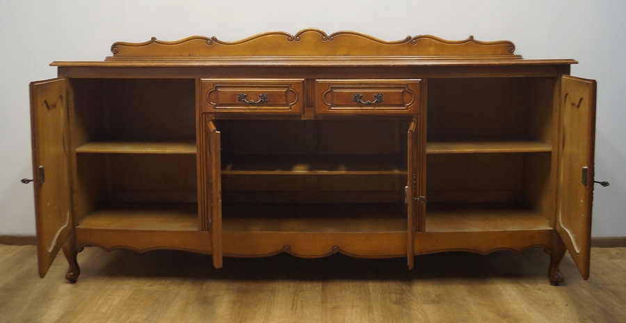 Комод має чотири дверцята і дві шухляди. Комод прикрашений різьбленням і спирається на красиві ніжки кабріоля. Низ оброблений декоративним воланом. Цей предмет меблів унікальний і особливий.