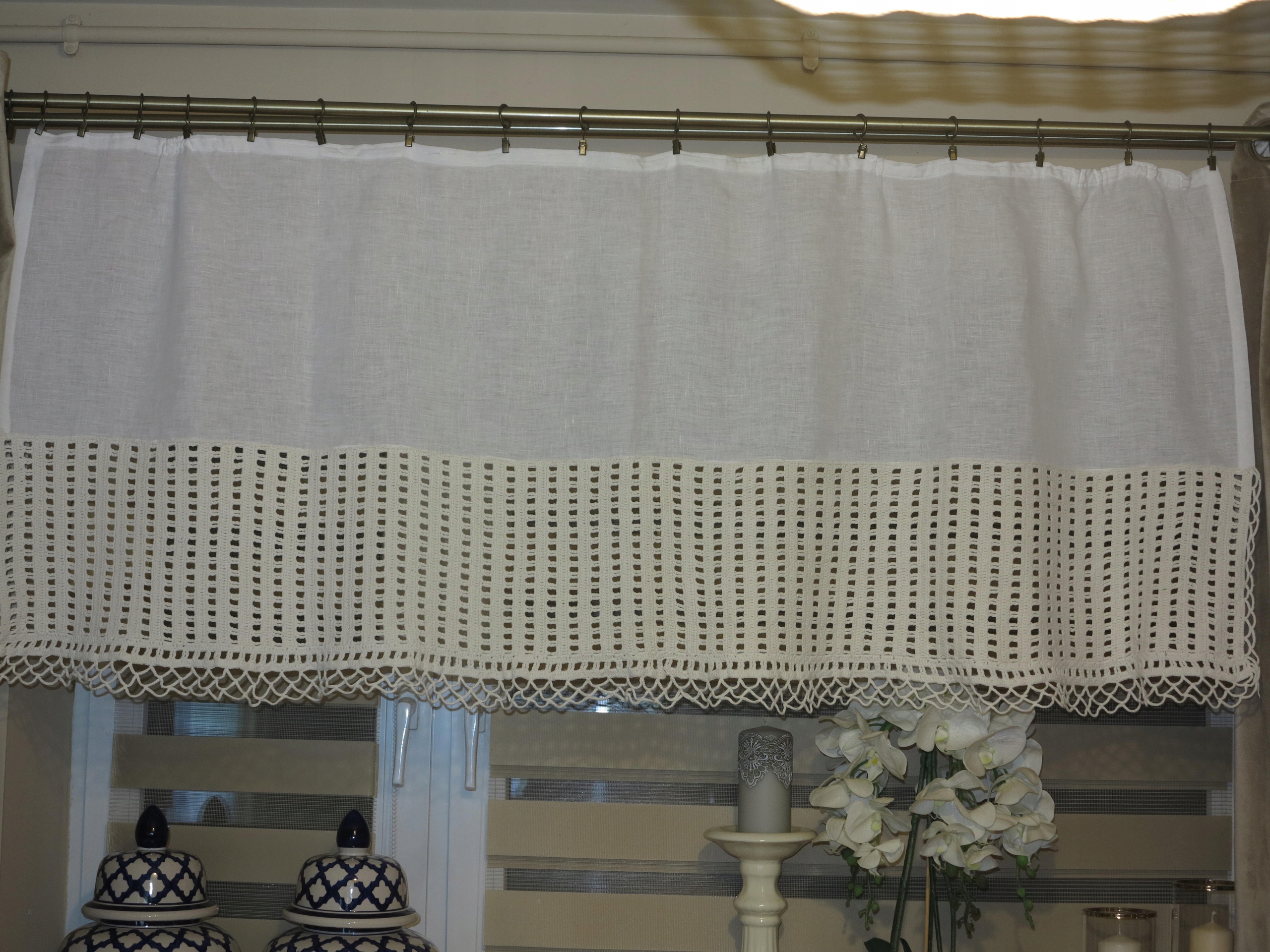 Предметом аукціону є дуже декоративна штора або штора, з в'язаний низ. Тканина чистий льон. Його розміри: ширина: 175 см, висота: 71 см. Штора б/у, в дуже хорошому стані та якості. Рекомендую.