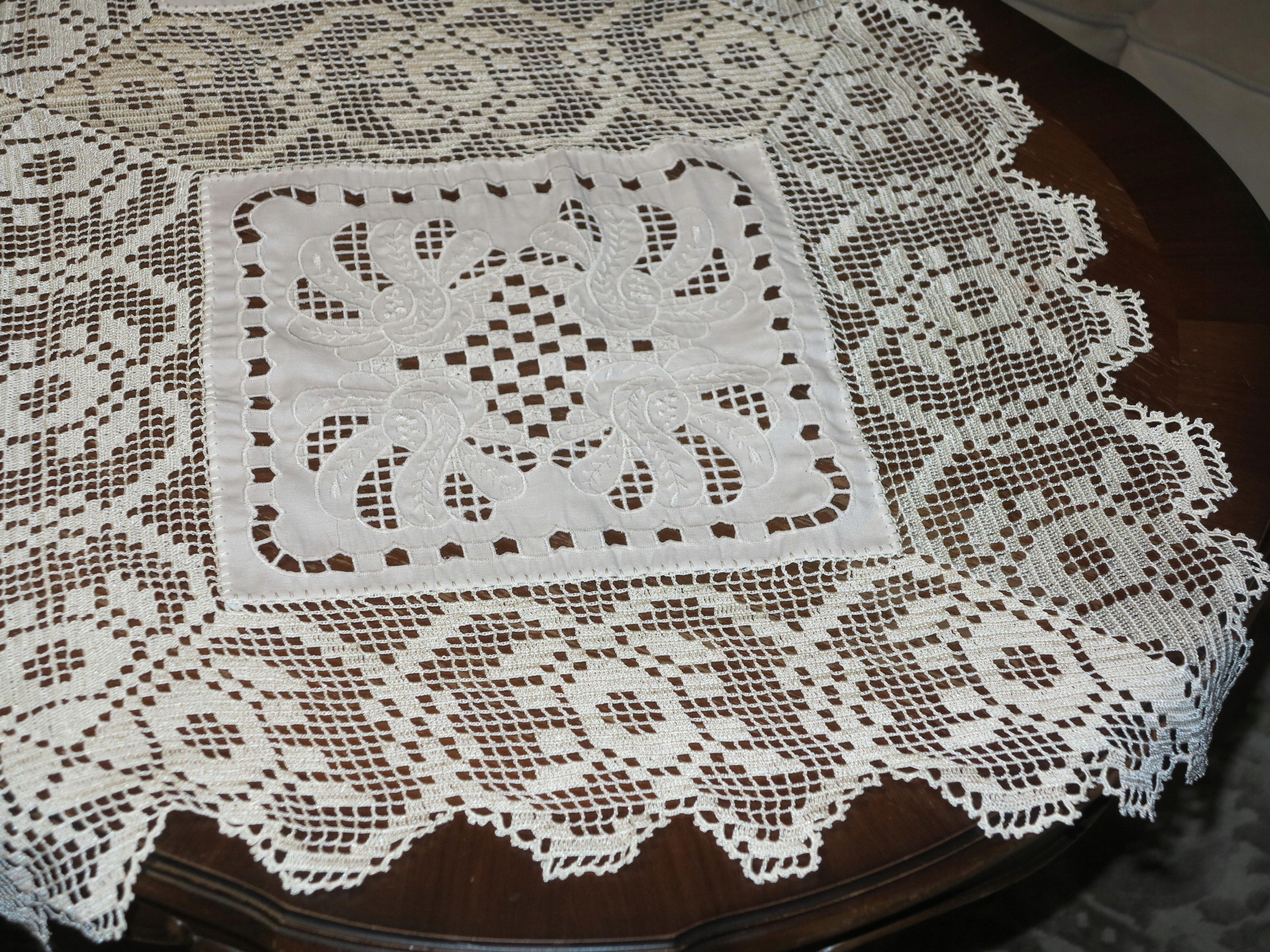 Предмет аукціону - чарівна скатертина з дуже декоративним візерунком, з багатим хитромудрим шнуром. Має розміри: 98/98 см. Скатертина б/в, в дуже хорошому стані та якості, з невеликим мінусом. Рекомендую