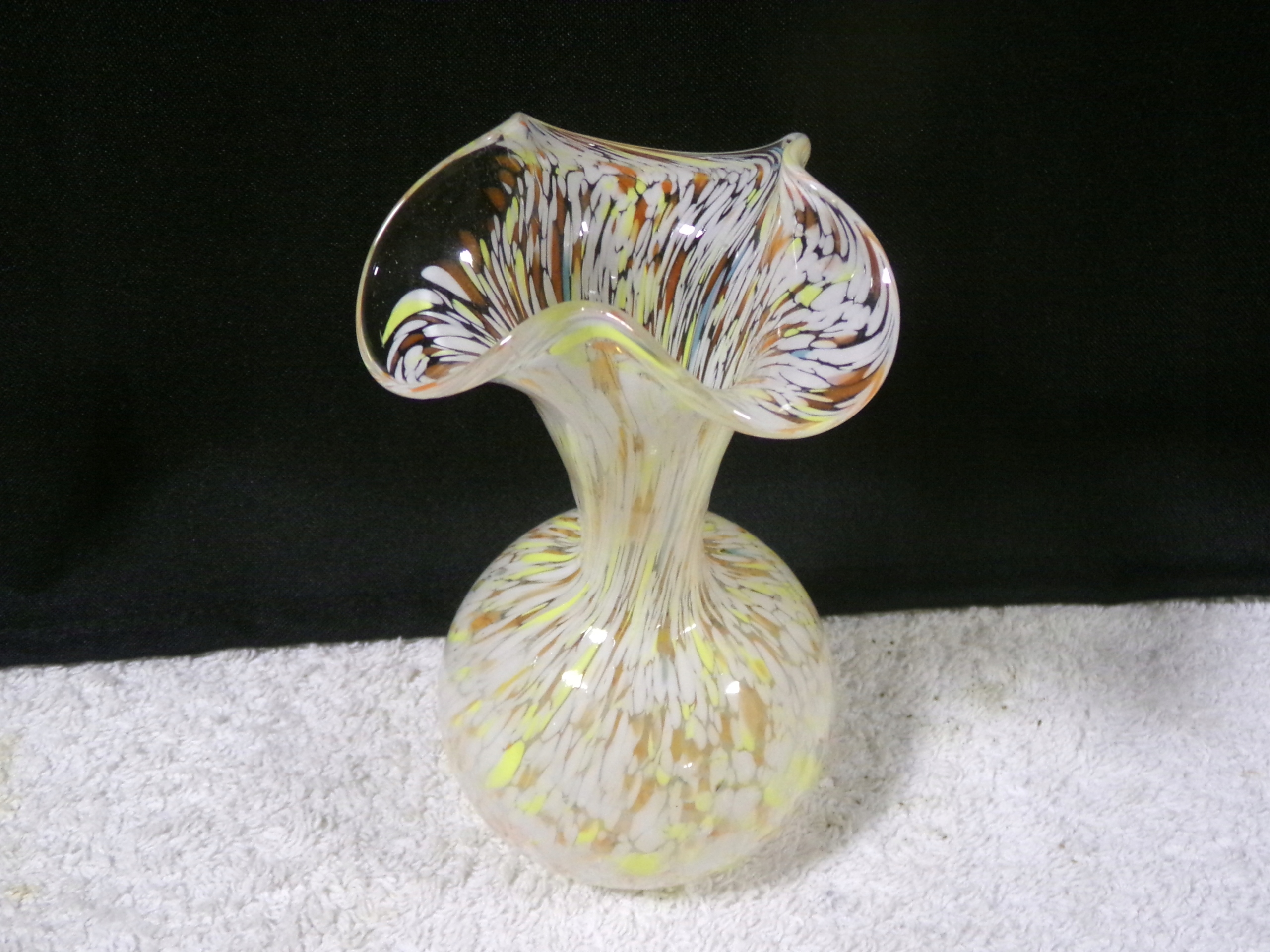 Красива скляна ваза ручної роботи, висота 13 см, діаметр центру 8 см, вага 0,16 кг. Дуже хороший стан, без пошкоджень.