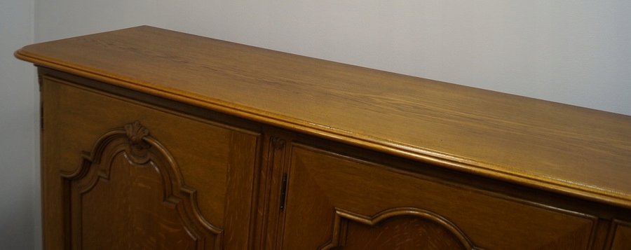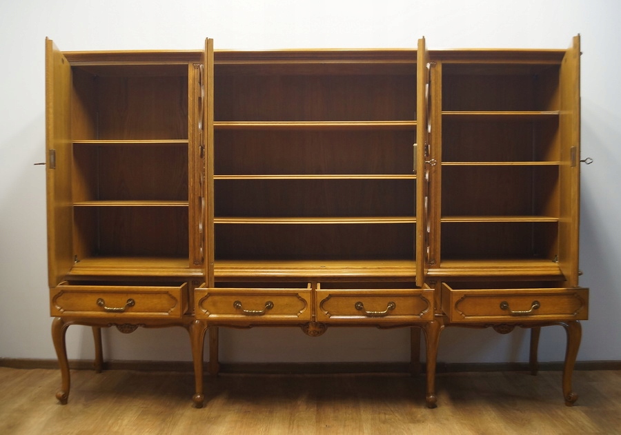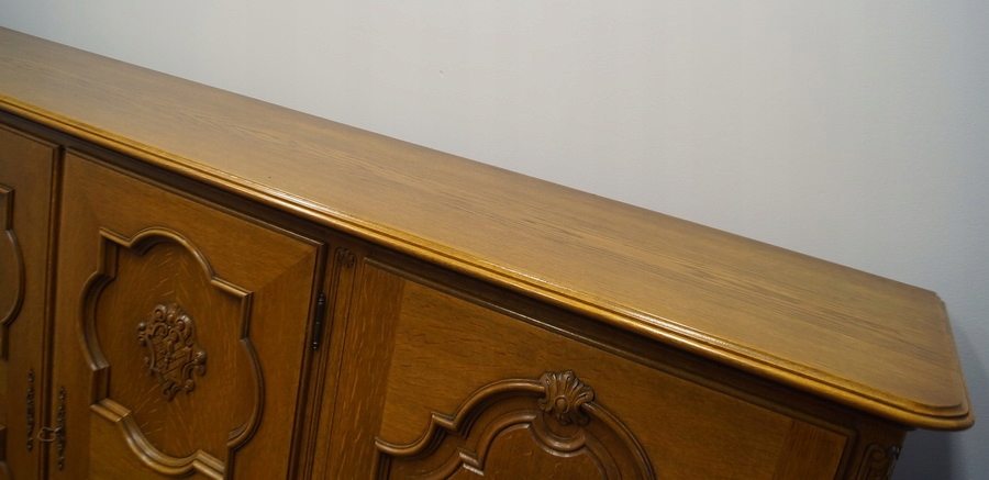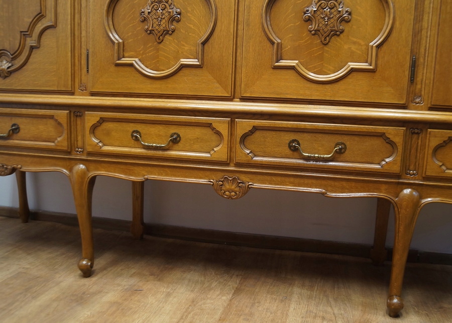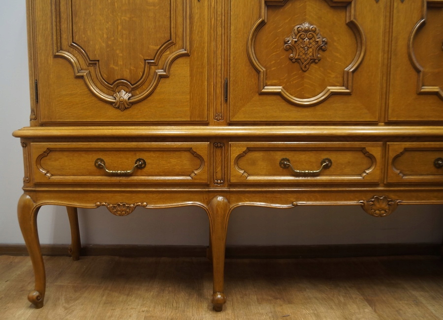 У комоді чотири гарно декоровані двері. Комод тримається на красивих ніжках кабріола. Низ оброблений декоративним воланом. Цей предмет меблів унікальний і винятковий.