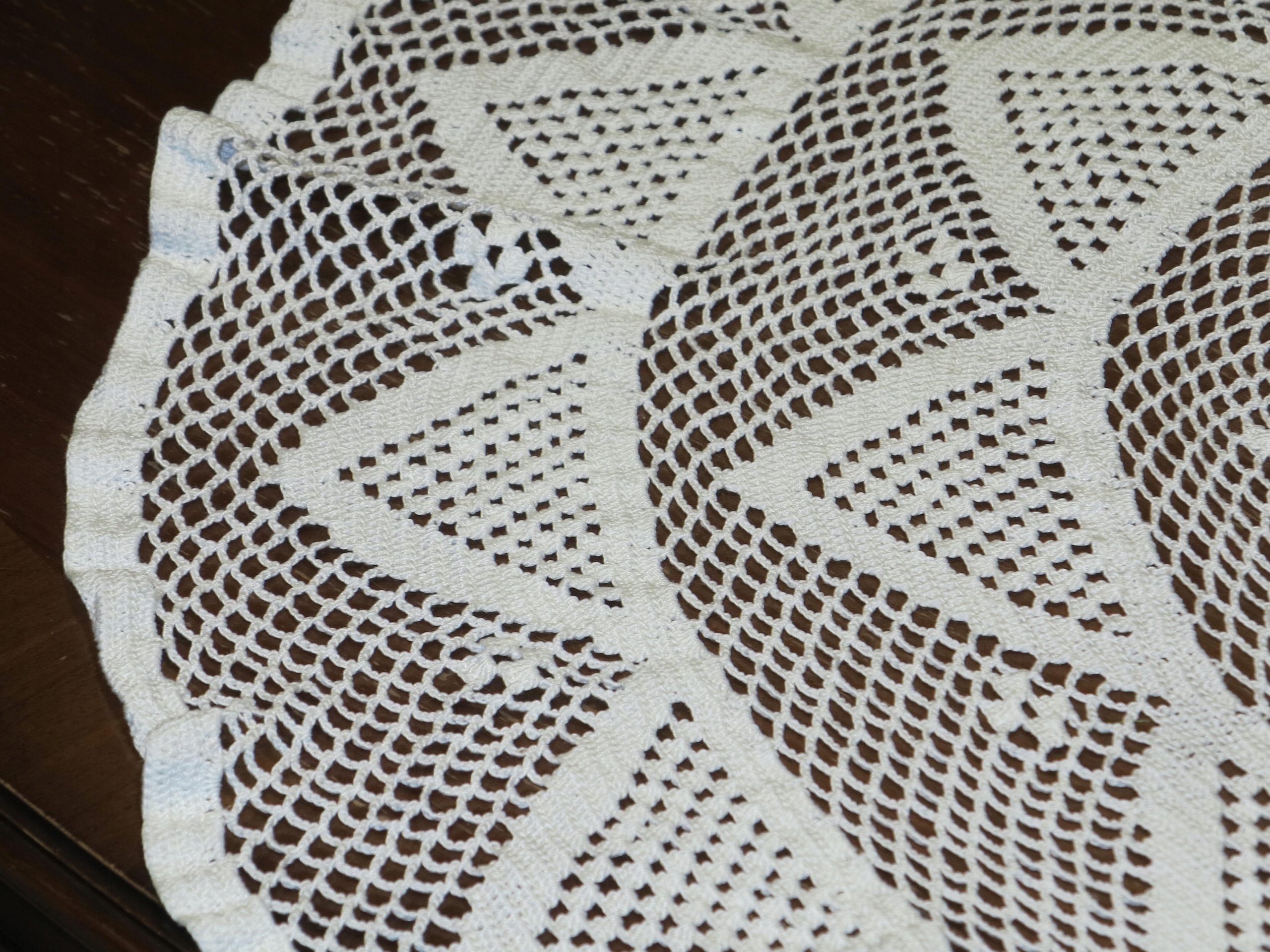 ГАРНУ КРУГЛУ СКАРТИНУ, В'ЯЗАНУ Вручну ІЗ БАВОВНЯНИХ НИТОК. БІЛОГО КОЛІРУ