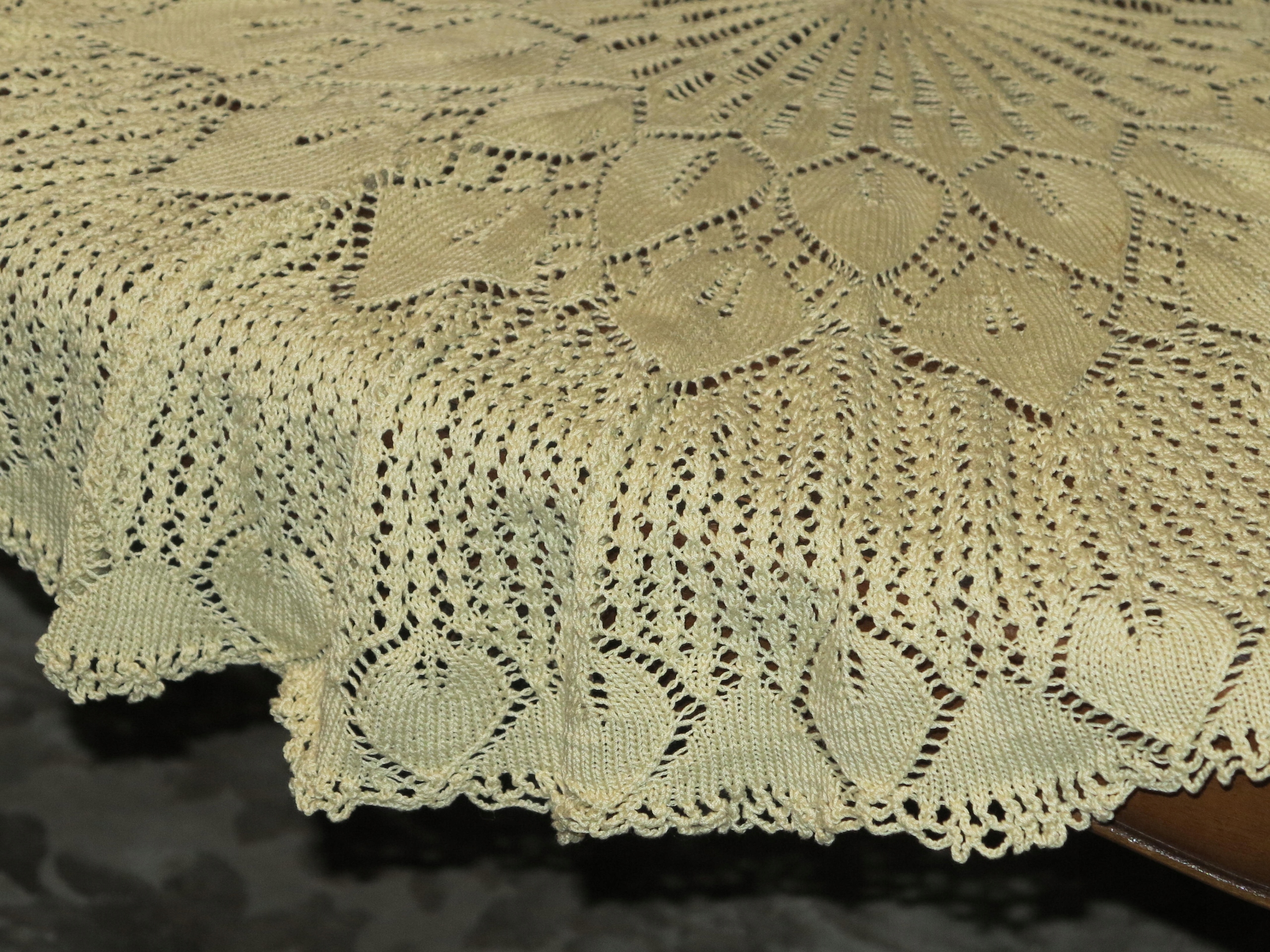 ГАРНУ СОЦІЛЬНУ ЩІЛЬНУ СКАТЕРТИНУ, вишуканої ручної в'язки, з бавовняних шнурових ниток. ТЕПЛИЙ БЕЖЕВИЙ КОЛІР