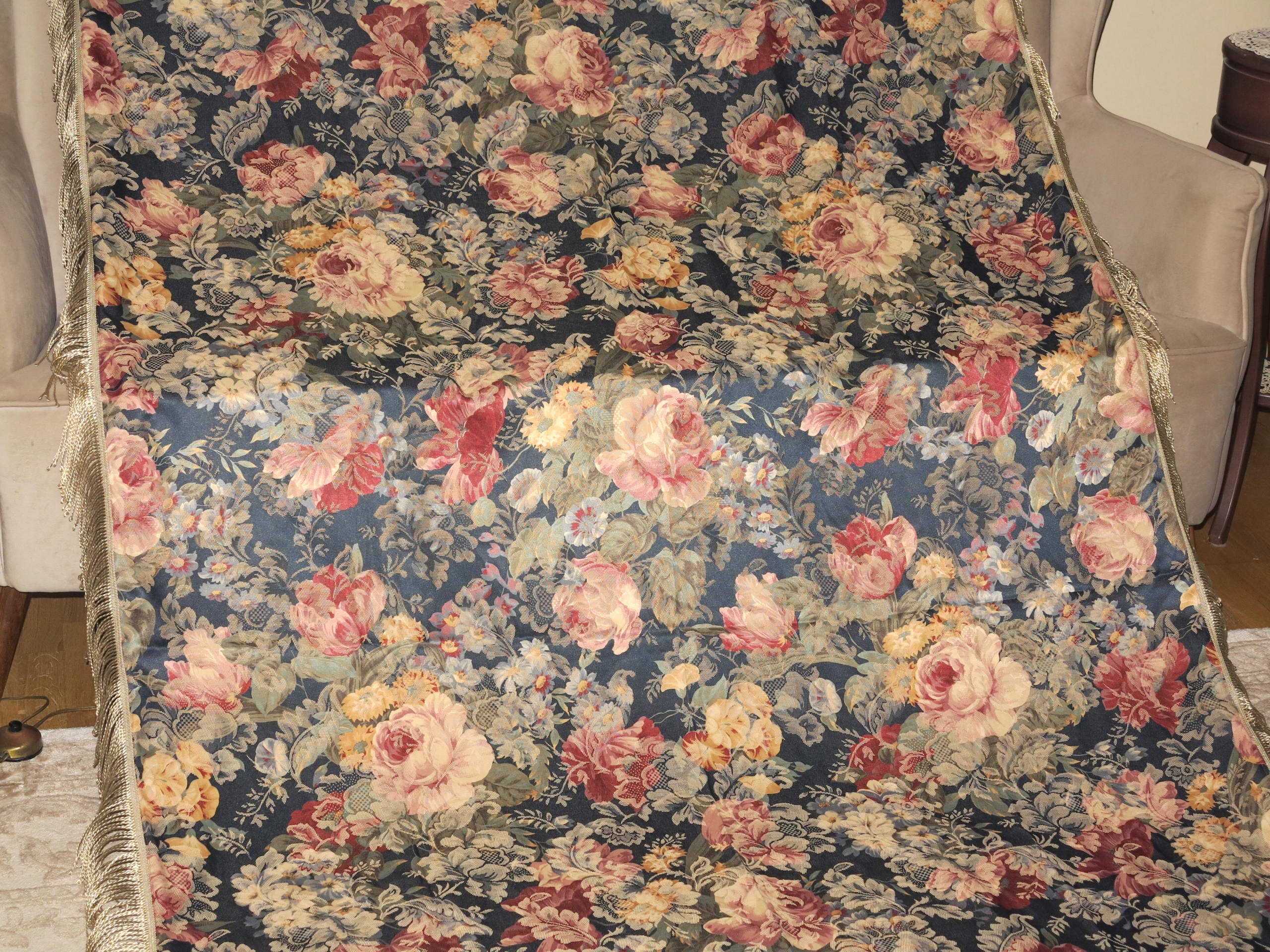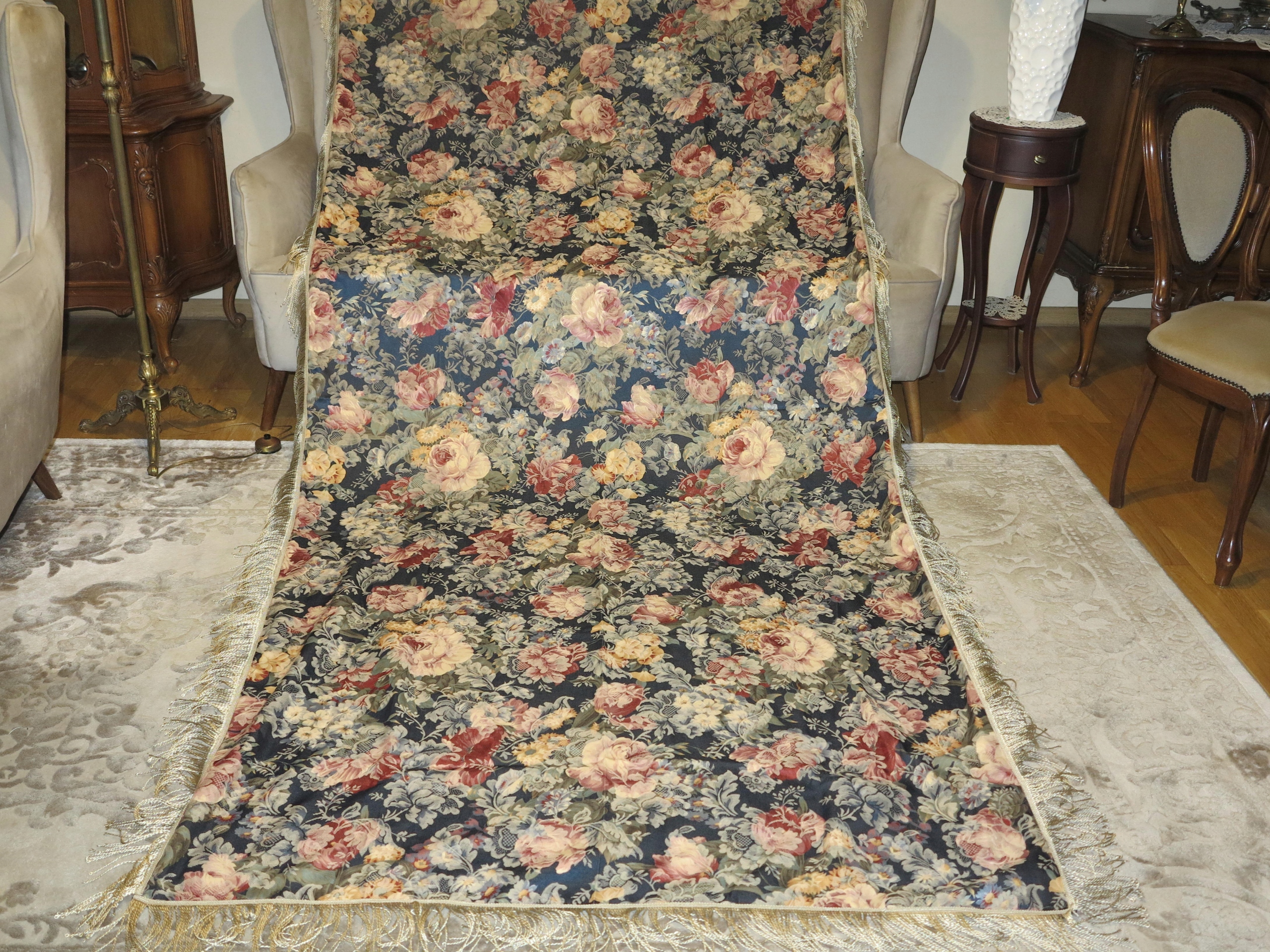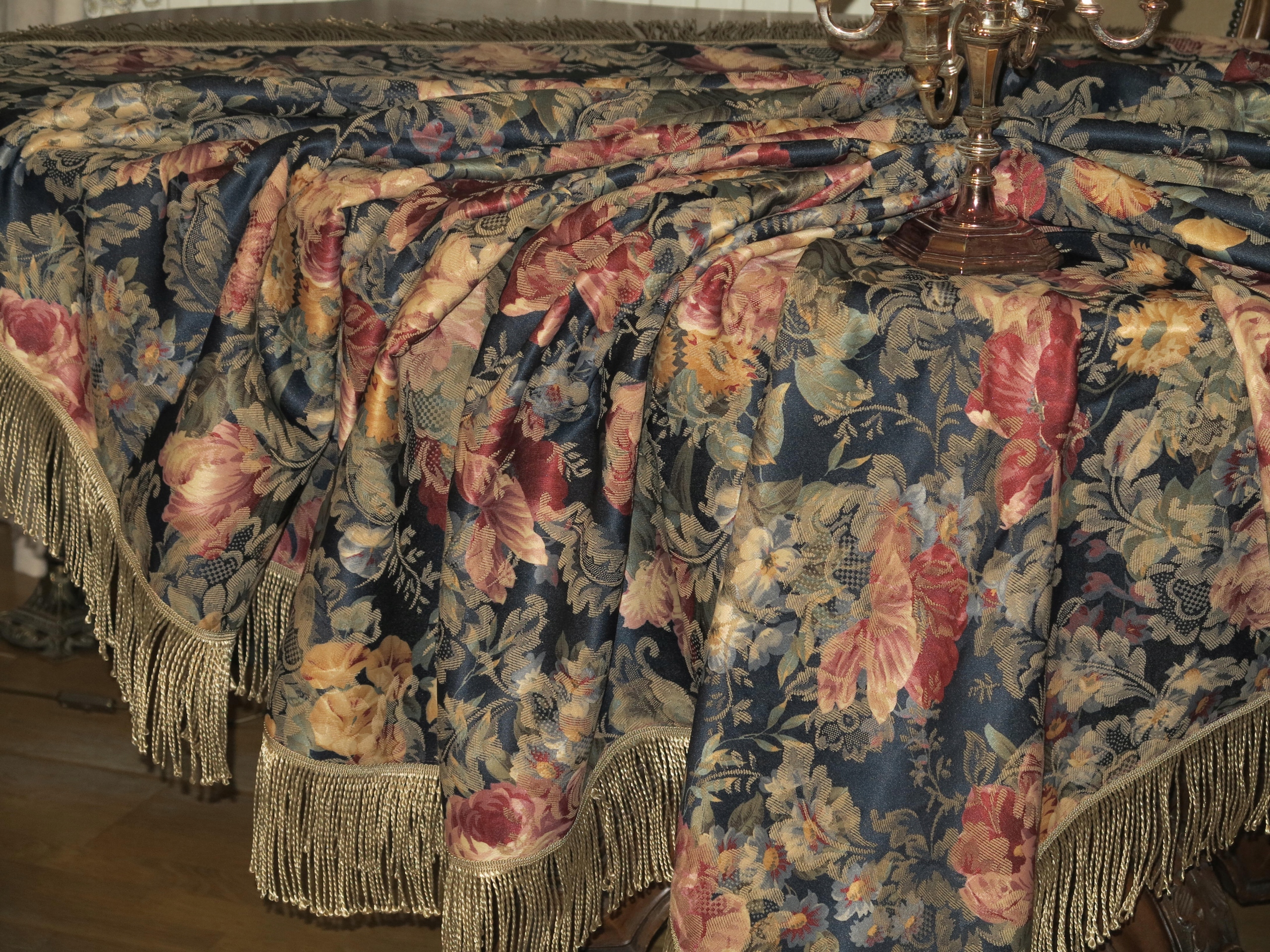 Предметом аукціону є надзвичайно красива англійська скатертина, усіяна квітами та з довгою золотистою бахромою. Б/у, у відмінному стані. Рекомендую.