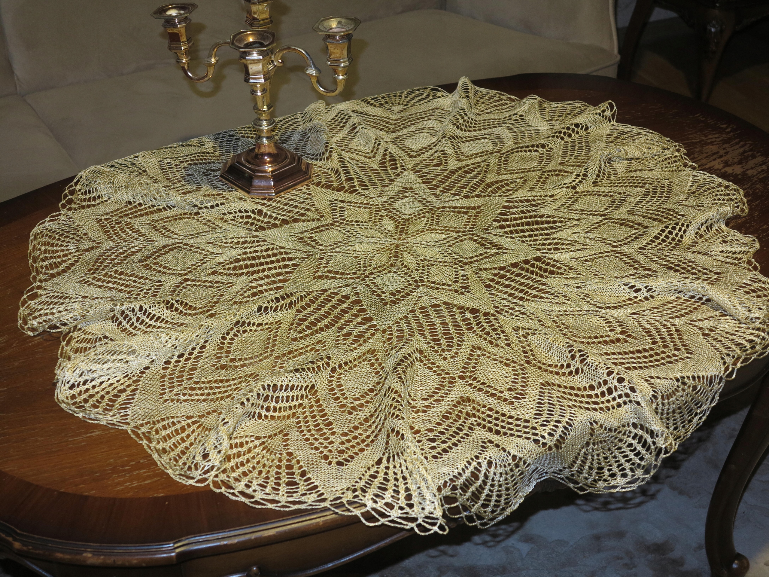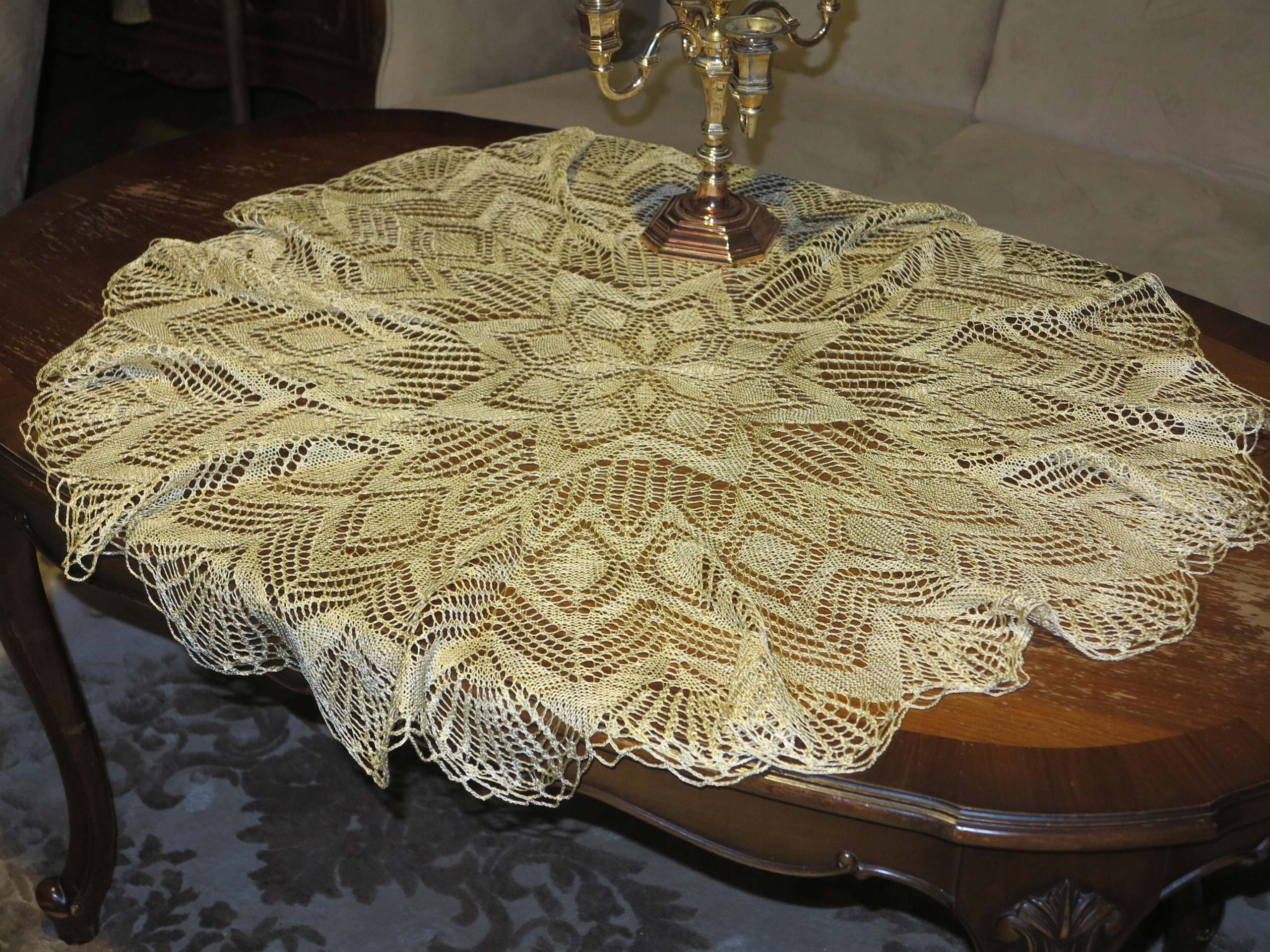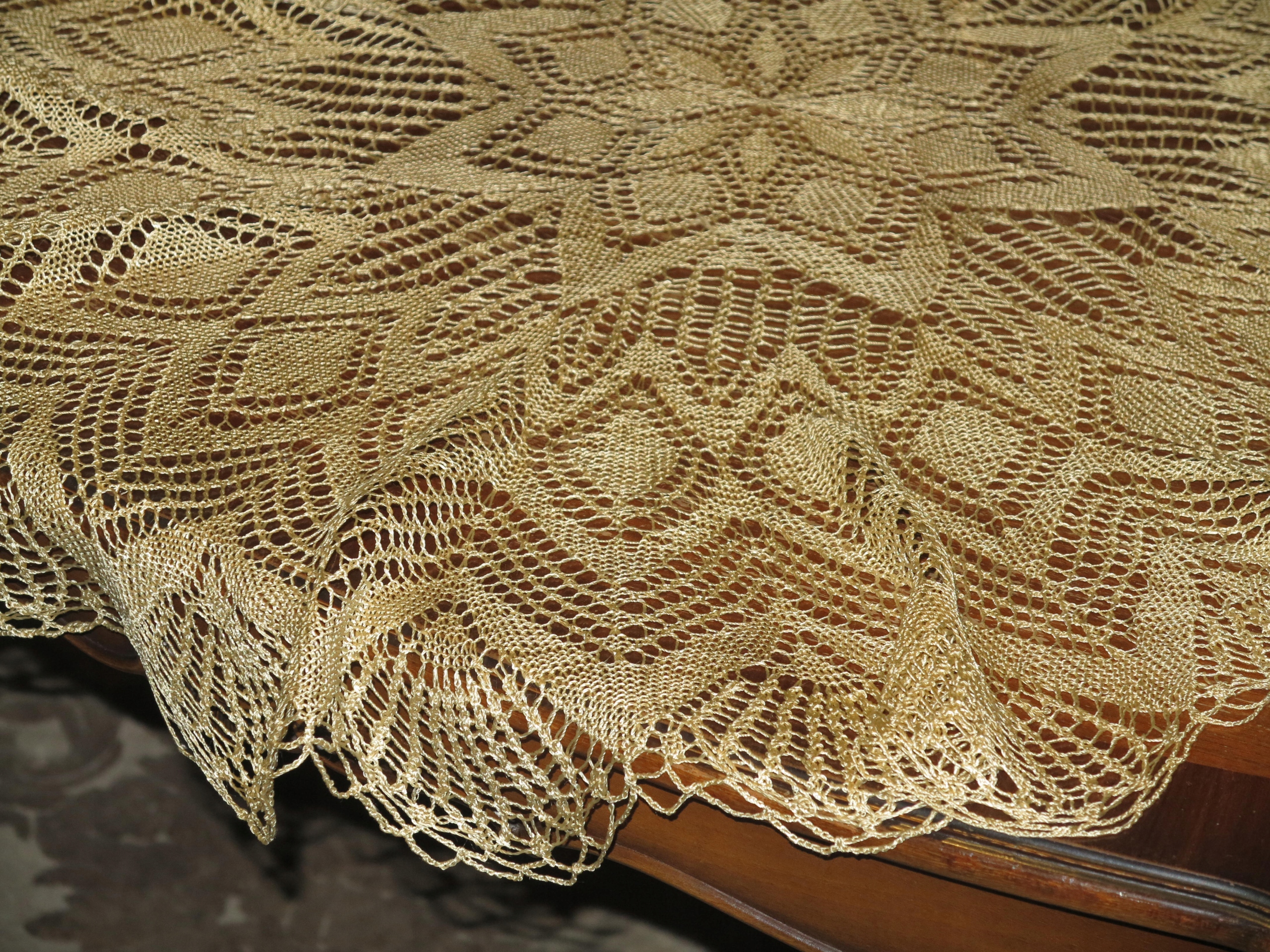 ЧУДОВУ ЗОЛОТУ СКАТЕРТИНУ-СЕРВЕТКУ, вишуканої ручної в'язки, з тонких шнурових ниток