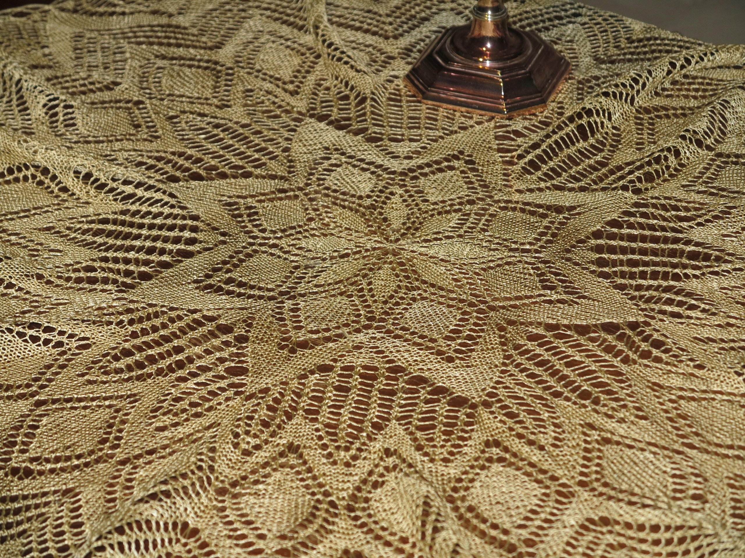 Предметом аукціону є надзвичайно красива, складна скатертина, ручна в'язана нитками золотого кольору. Красиво виглядає на столі. Б/у, в супер хорошому та якісному стані. Рекомендую.