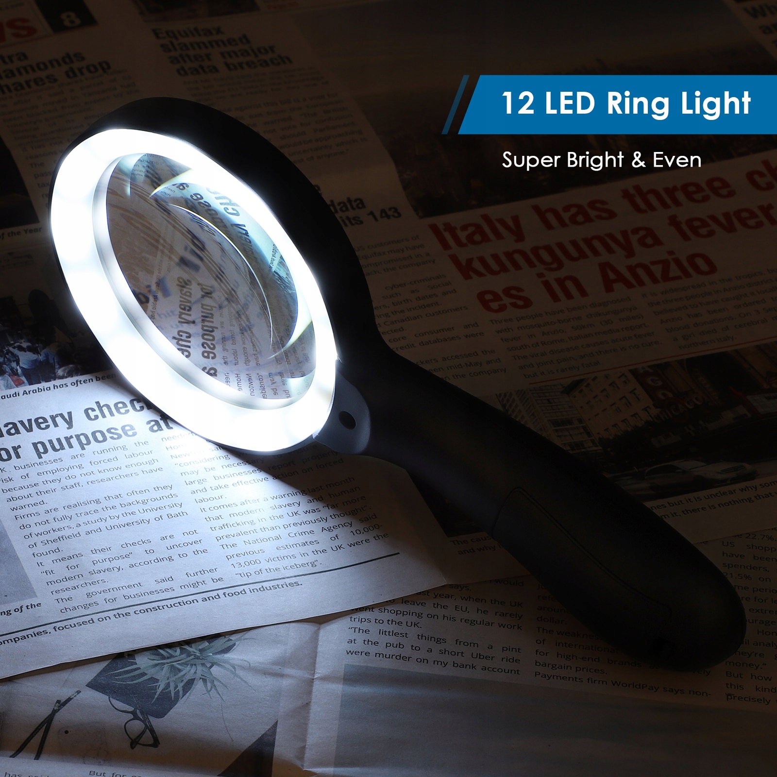 ✅ Лупа ідеально підходить для читання - завдяки вбудованим 12 світлодіодам, що також чудово підходить вночі!