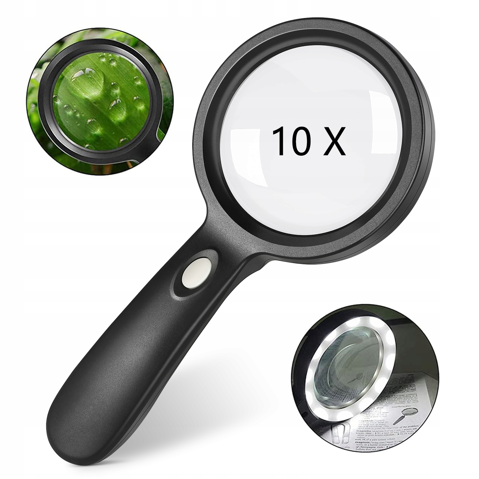 ⭐ВЕЛИКЕ ЗБІЛЬШУВАЛЬНЕ СКЛО, 10-кратна скляна лінза, 12-кратне світлодіодне підсвічування⭐