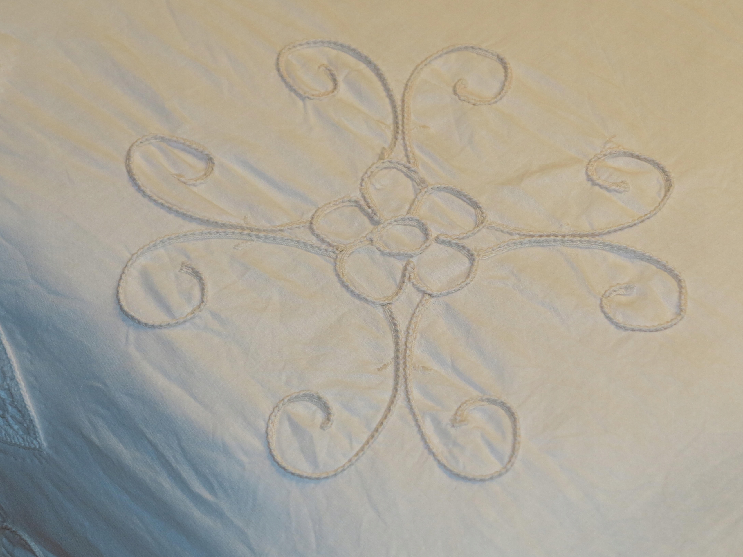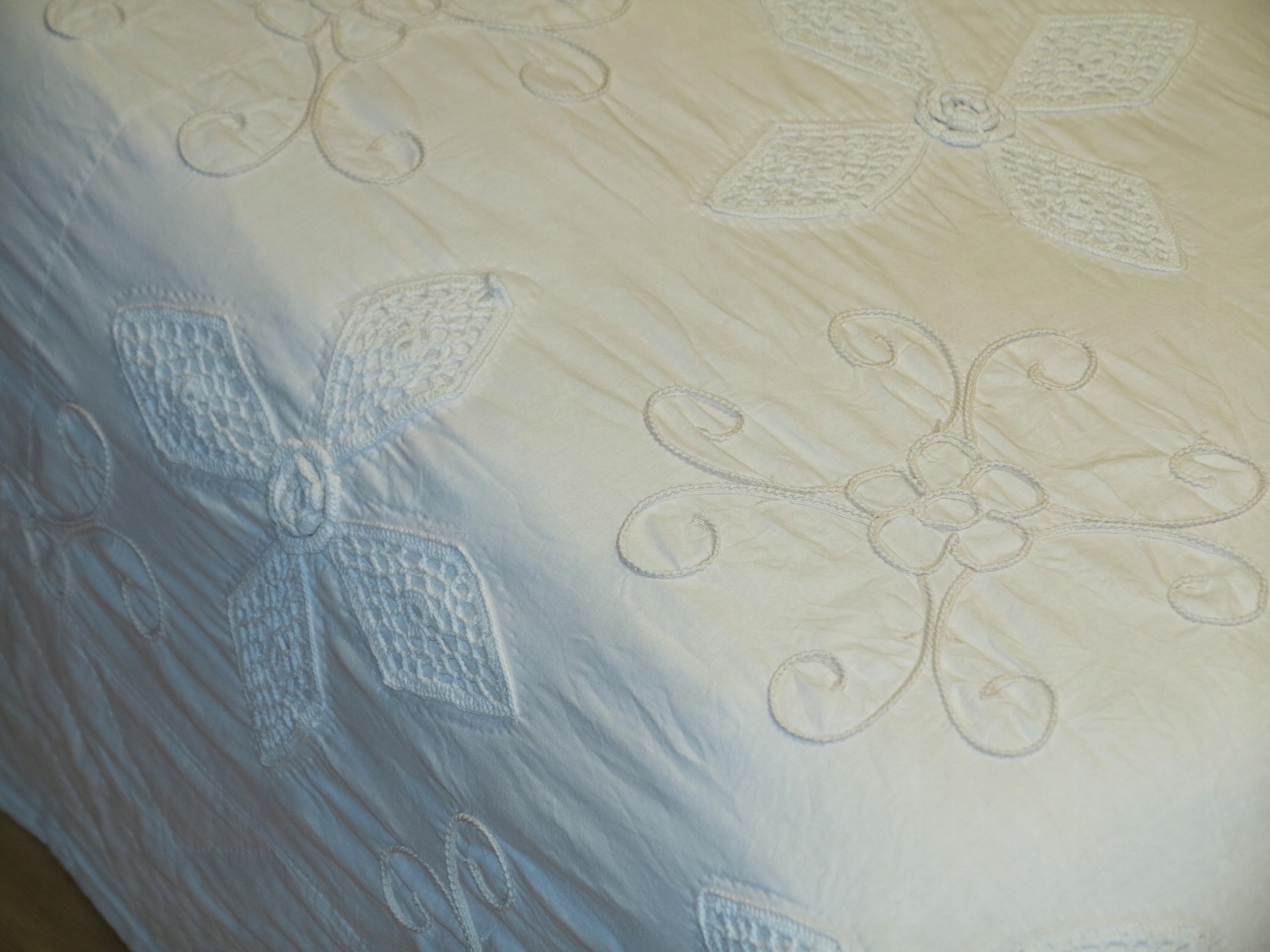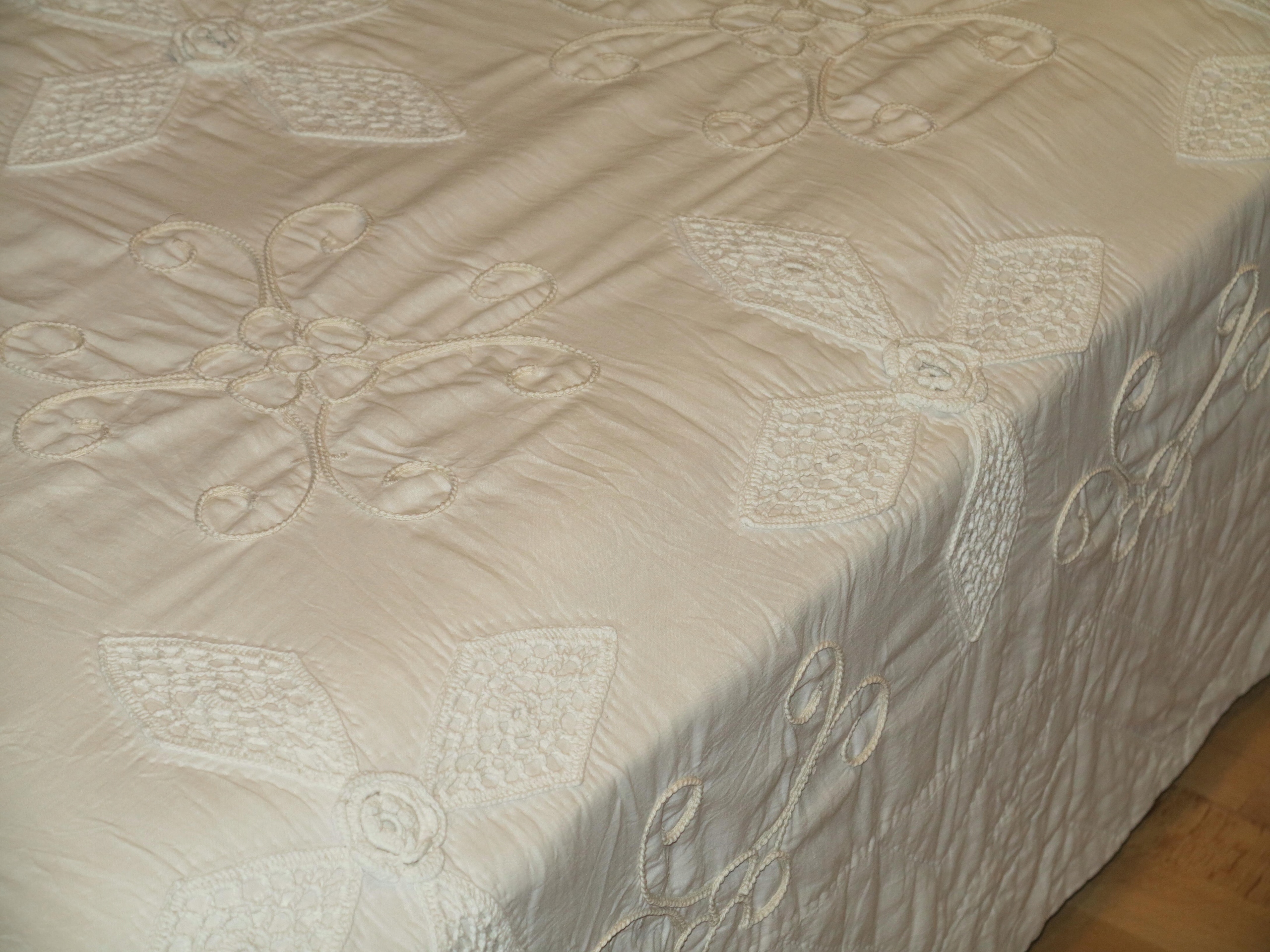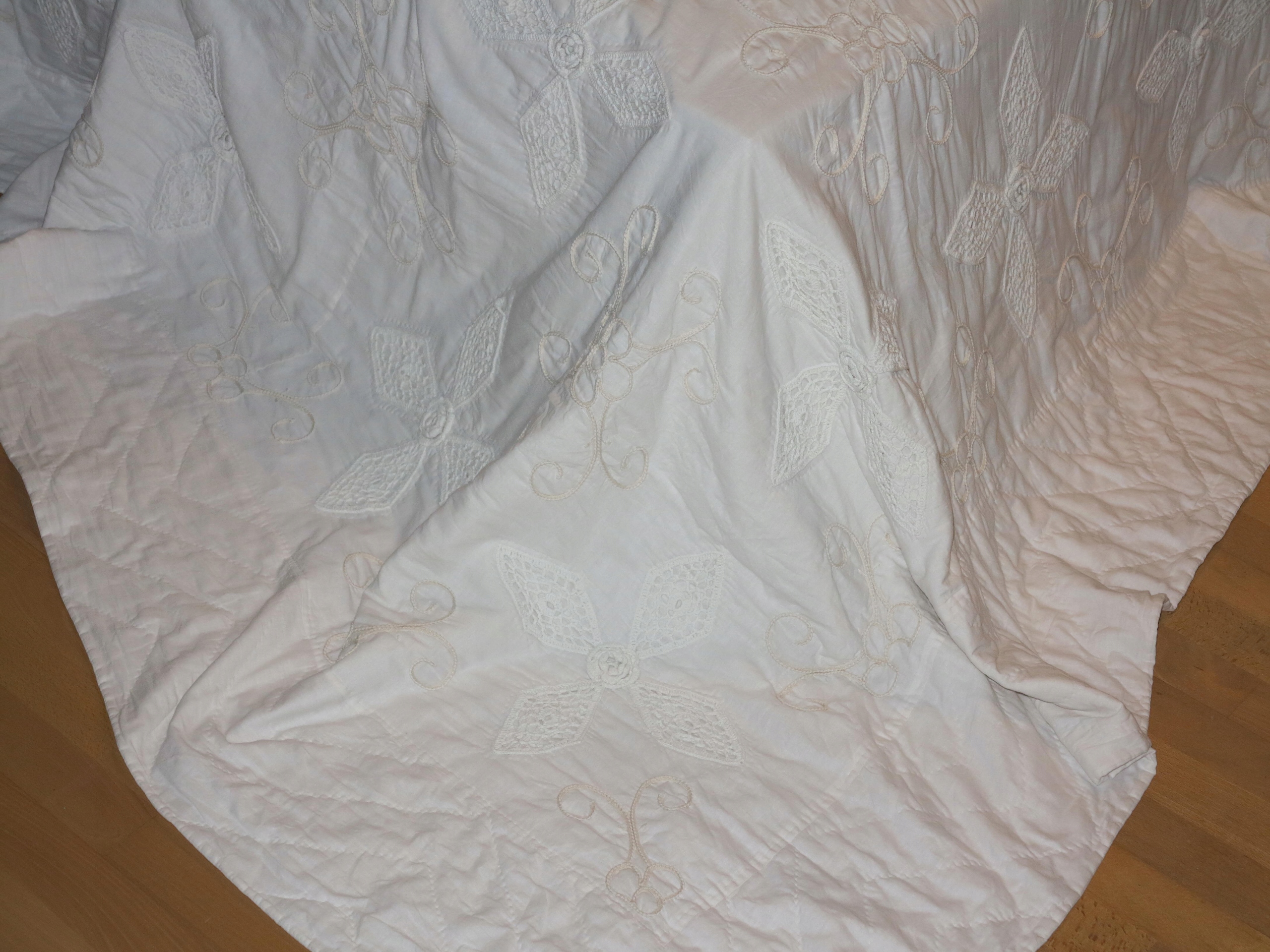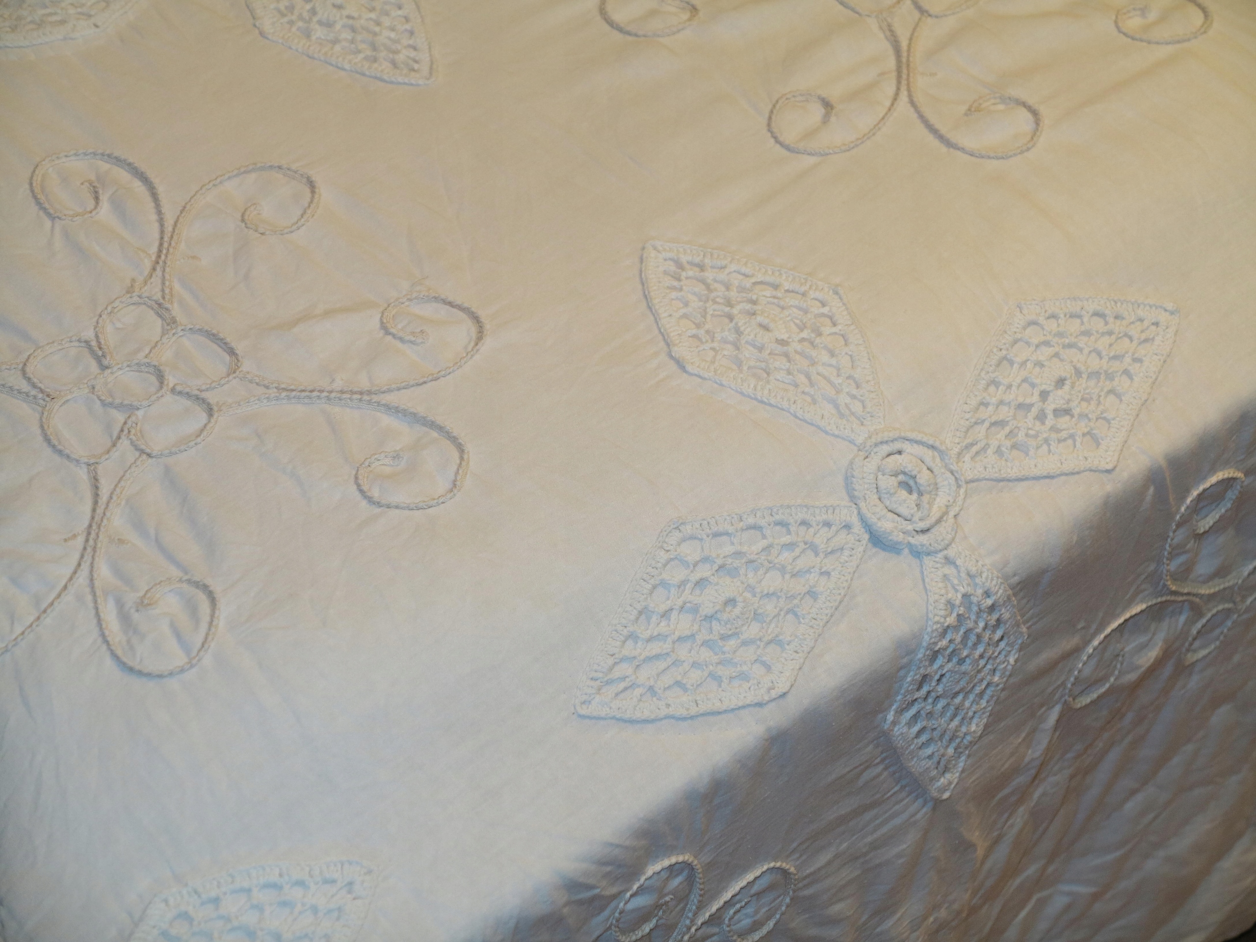 ЧУДОВЕ АНГЛІЙСЬКЕ РЕТРО ПОГОЛІВНИК, БАГАТЕ В'ЯЗАННЯ ГАЧКОМ, ВИШИВКА СТРІЧКАМИ, БАВОВНА