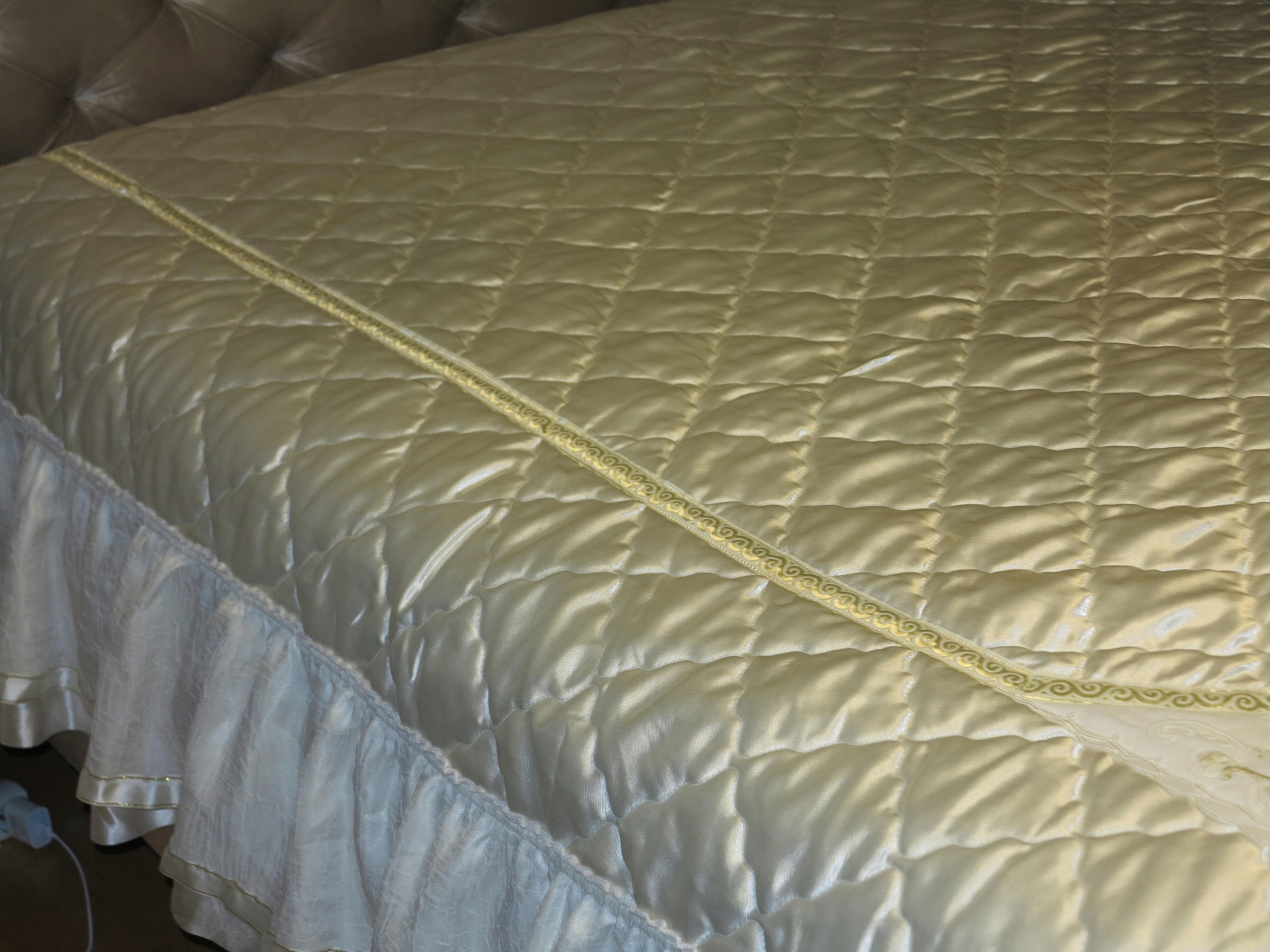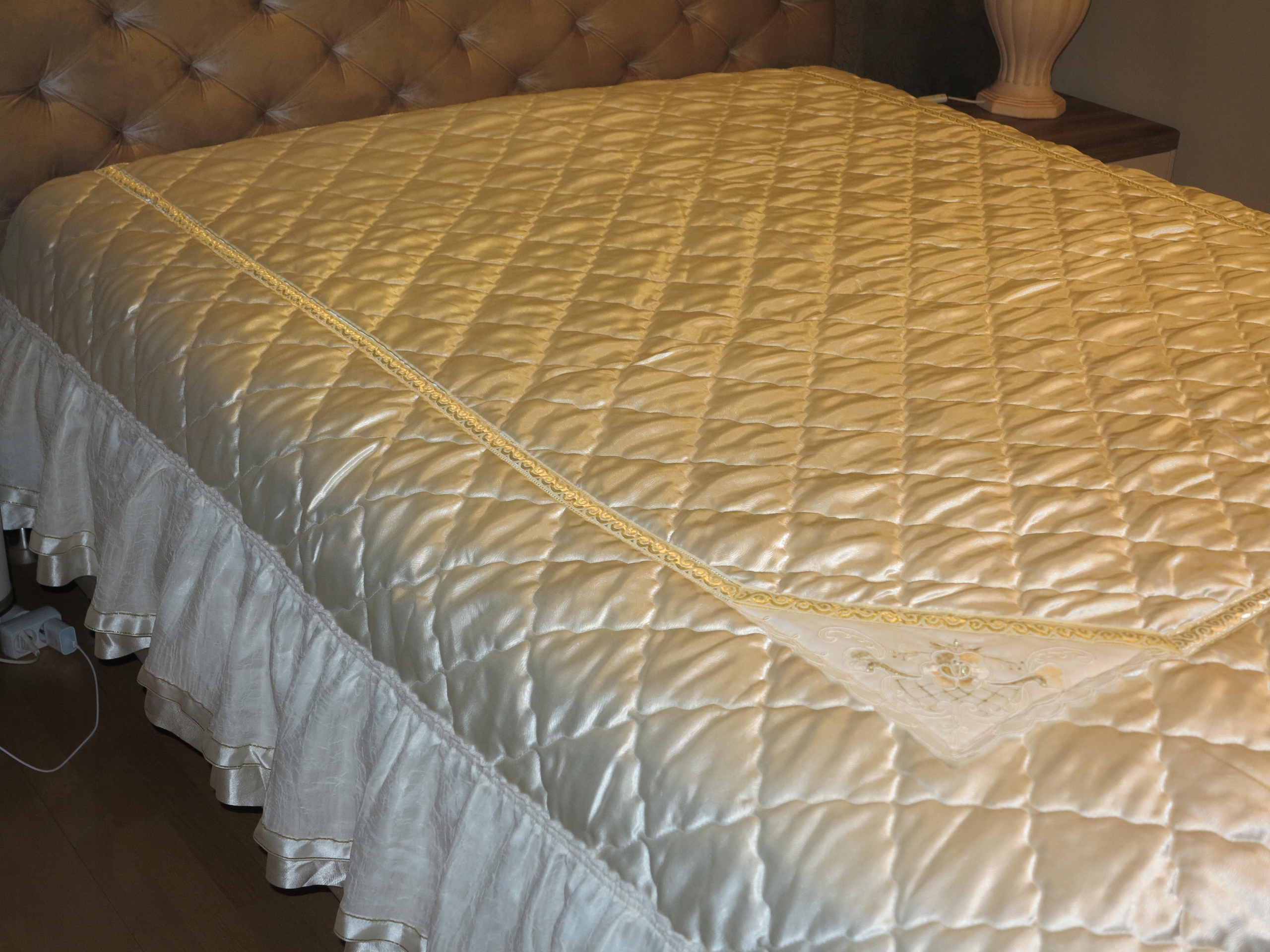 Предмет аукціону - красиве англійське покривало на велике ліжко, з оборками та вишивкою. Покривало б/в, у відмінному стані та якості.