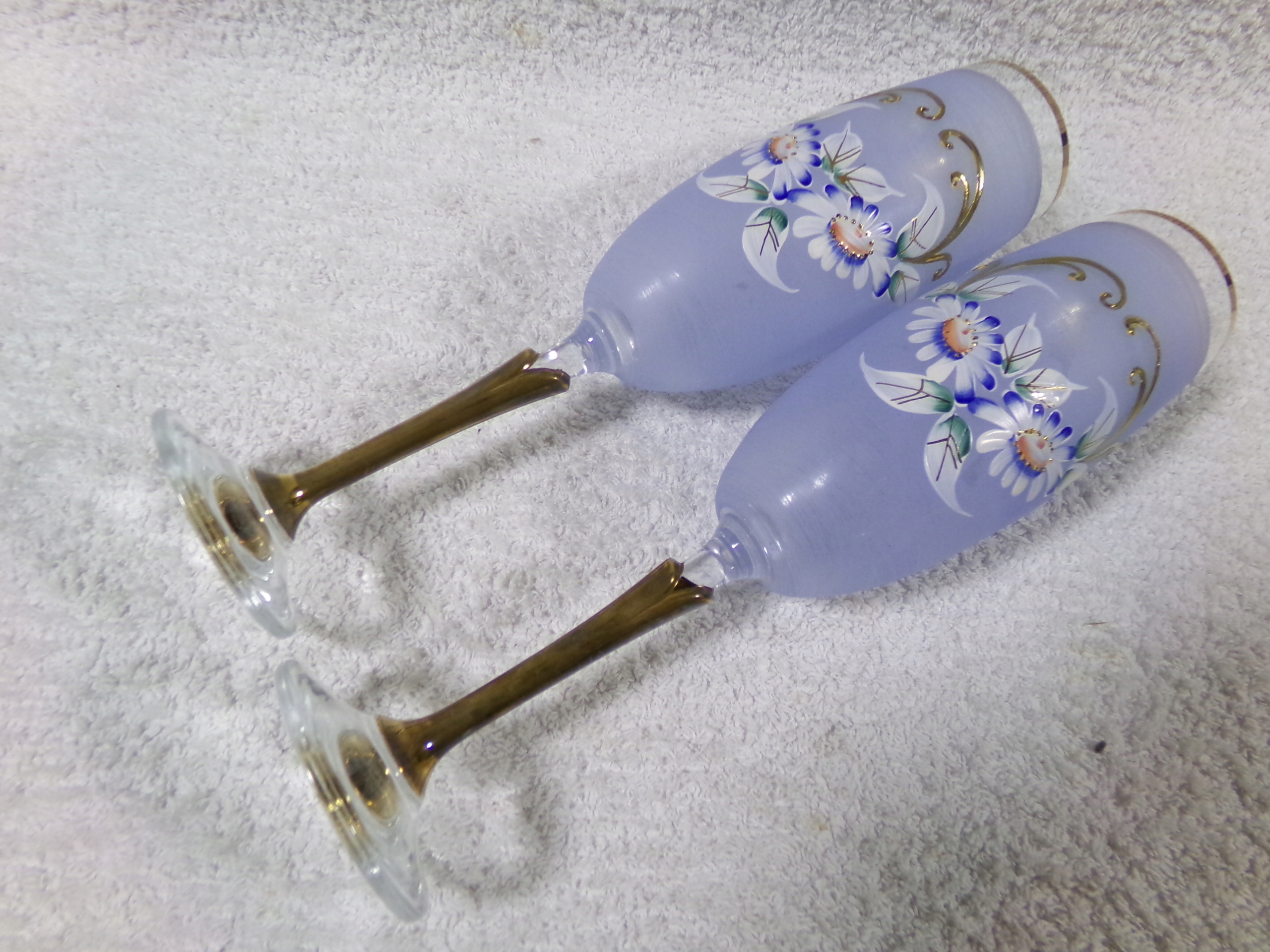 Набір з 2 красивих окулярів, пофарбованих вручну з висотою 23 см, середнього діаметра 4,5 см, вагою 0,28 кг. Дуже хороший стан збережений, без пошкоджень.