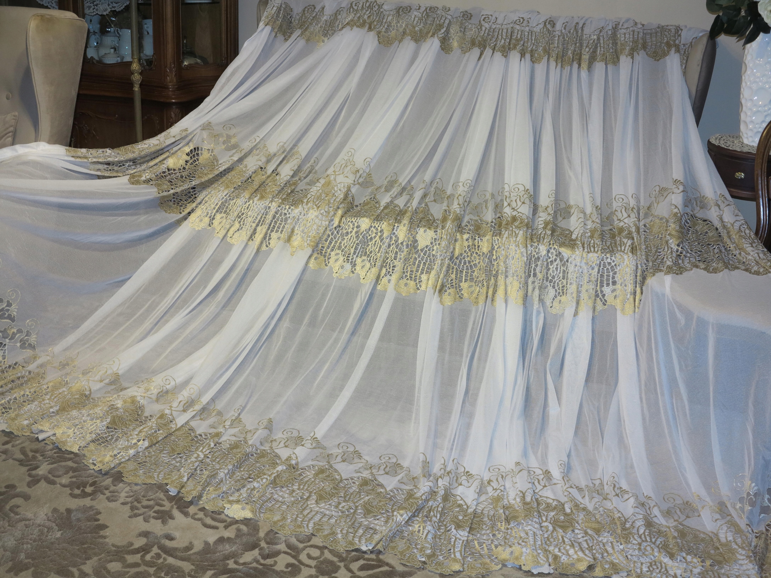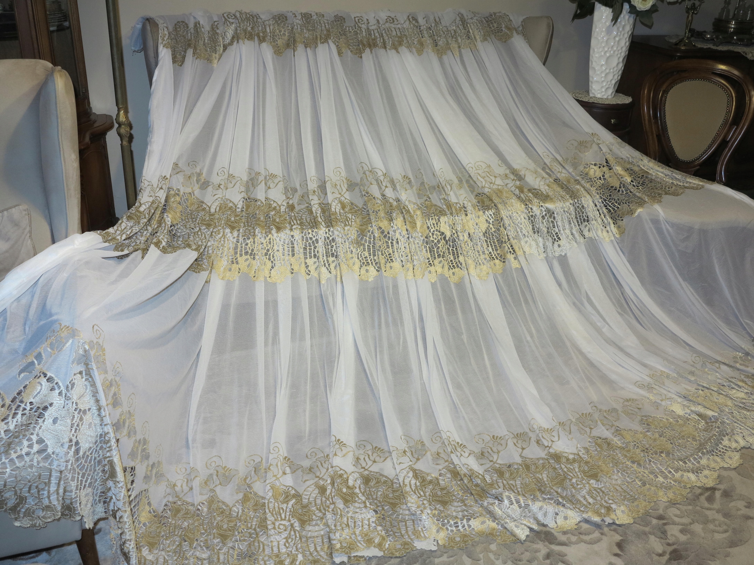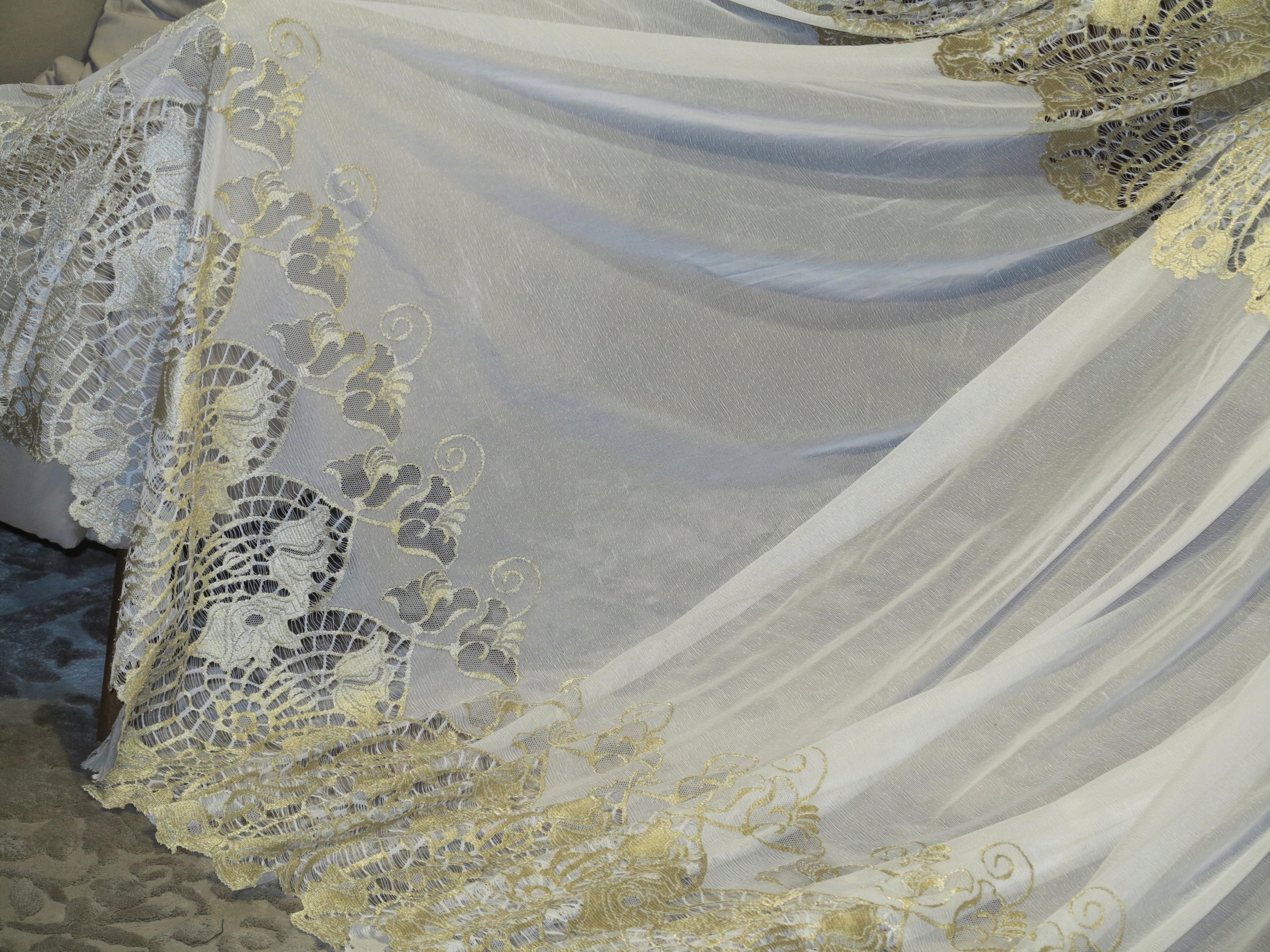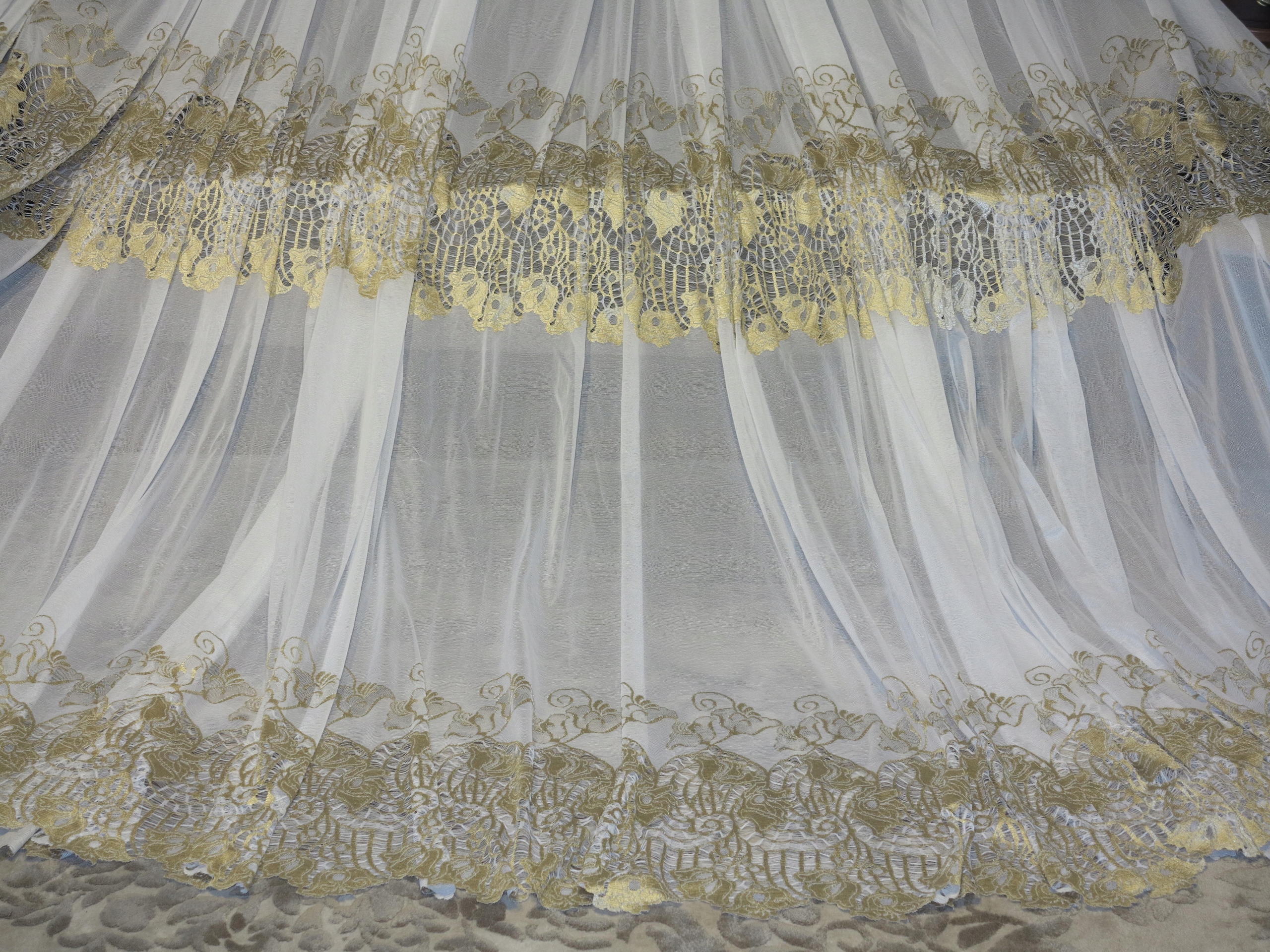 ЧУДОВУ ВЕЛИЧЕЗНУ БІЛУ ШТОРУ, З РЯСНИМИ ЗОЛОТИМИ ВИЗЕРУНКАМИ. ДУЖЕ ДЕКОРАТИВНА ШТОРА