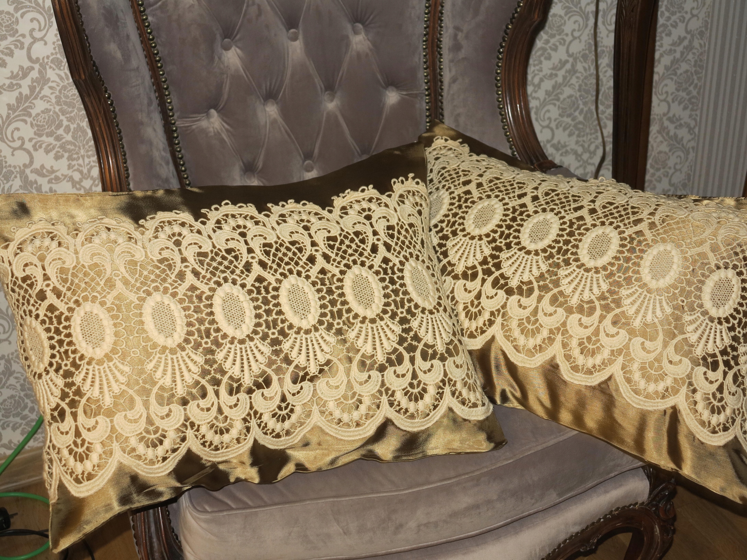 Предметом аукціону є комплект з надзвичайно красивих двох великих подушок з товстим гіпюром кольору екрю. Набір б/в, в дуже хорошому стані та якості. Рекомендую
