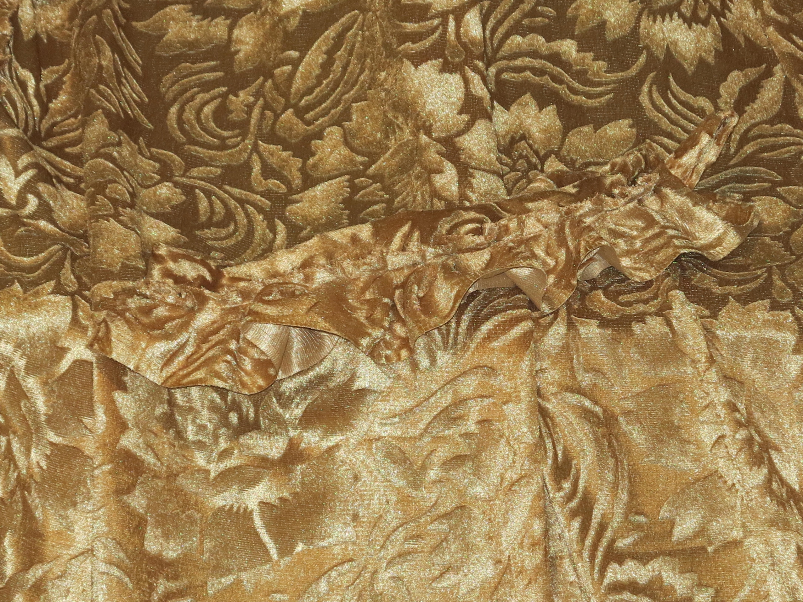 у наборі з'єднання з надмірностями. Штори, виготовлені з м'ясистого оксамитового оксамиту з приголомшеним квітковим малюнком із золотистого кольору