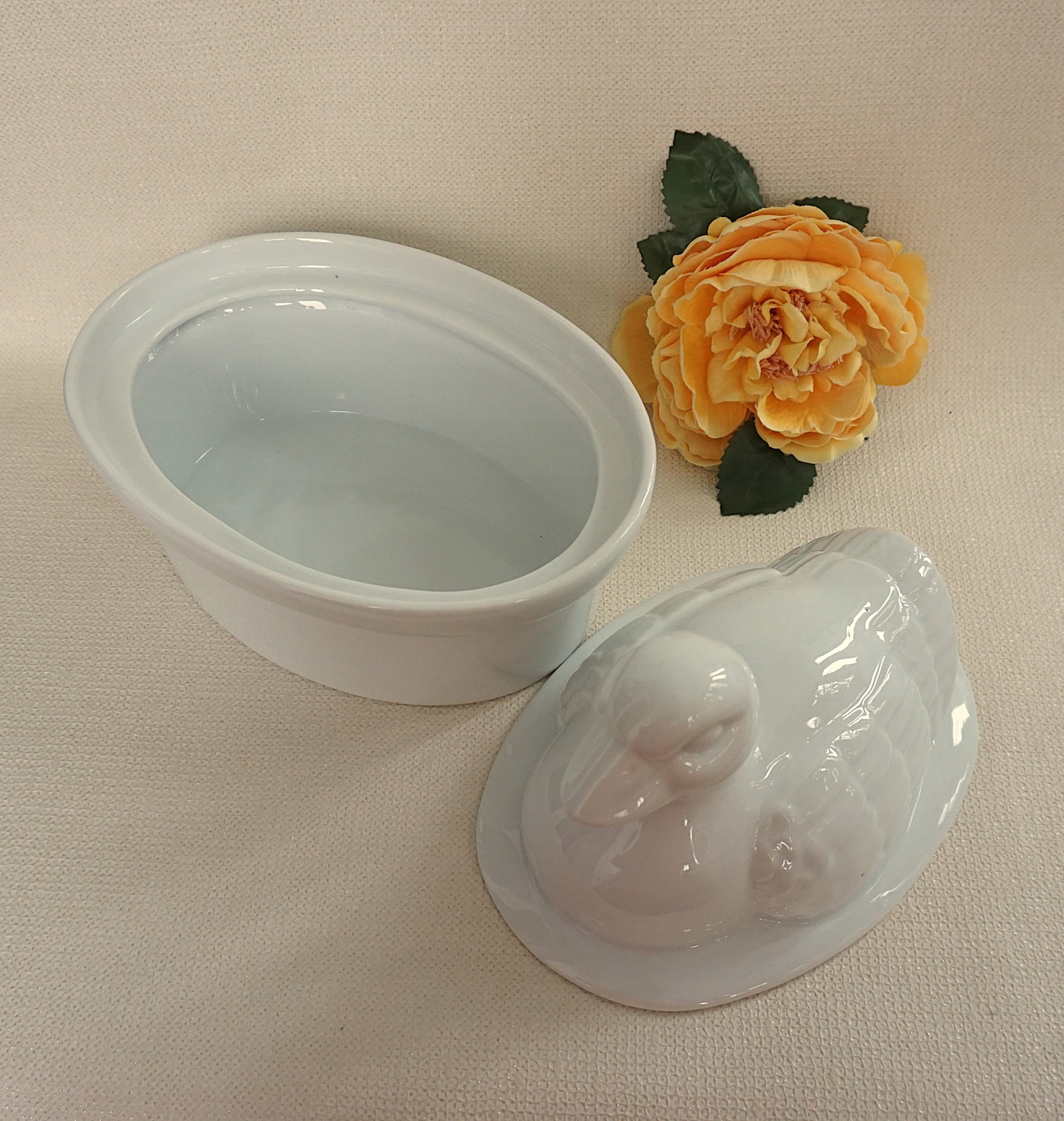 Чудовий, великий порцеляновий контейнер з качкою! Весь білий! Ваза!