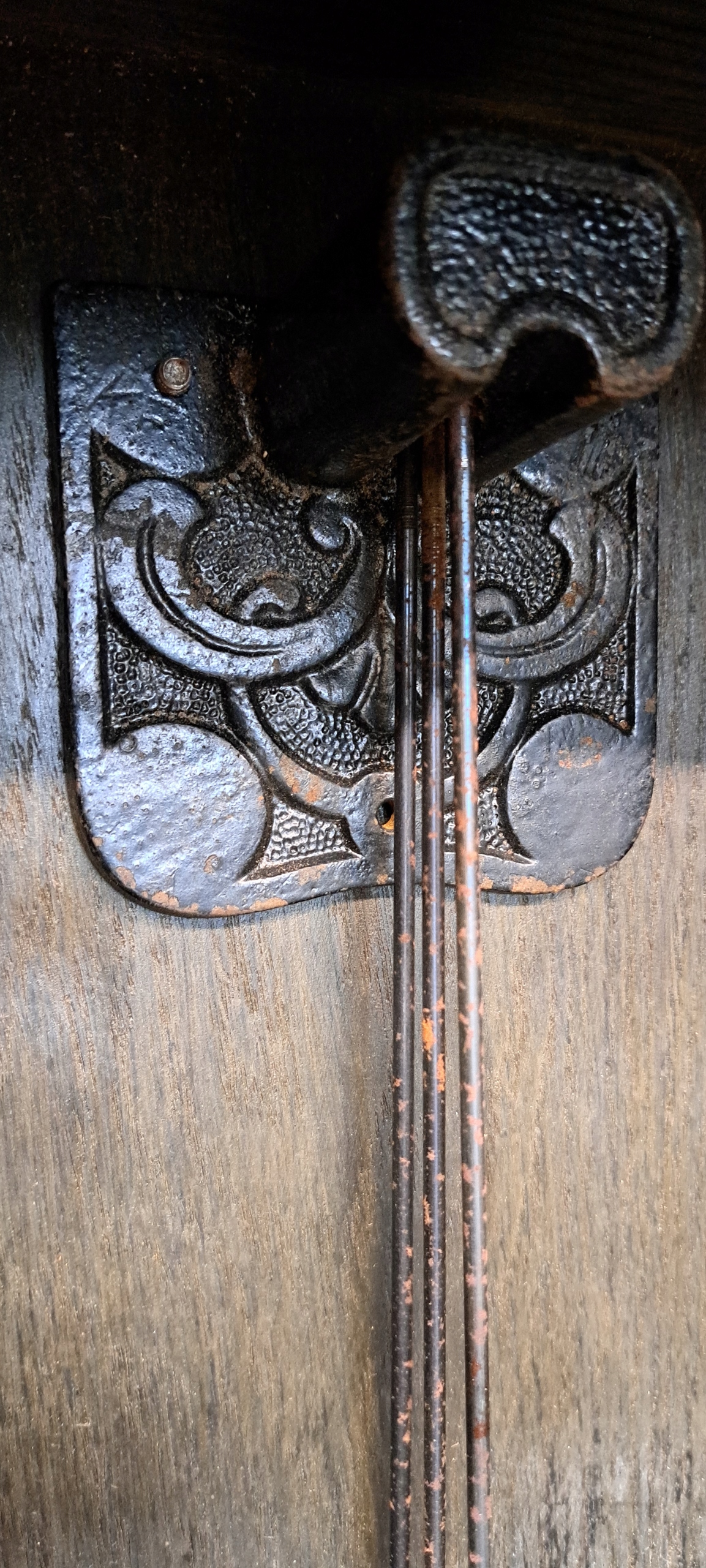 ЧУДОВИЙ ВИТРАЖ З 3 ДУЖЕ ТОВСТИМИ, КРИШТАЛЬ, СКОШЕНЕ СКЛО, ЗА ЯКИМ СТРАВНО РУХАЄТЬСЯ МАЯТНИК, ПРАВИЛЬНО ТА ПУНКТУАЛЬНО ВИМІРЯЮЧИ ЧАС