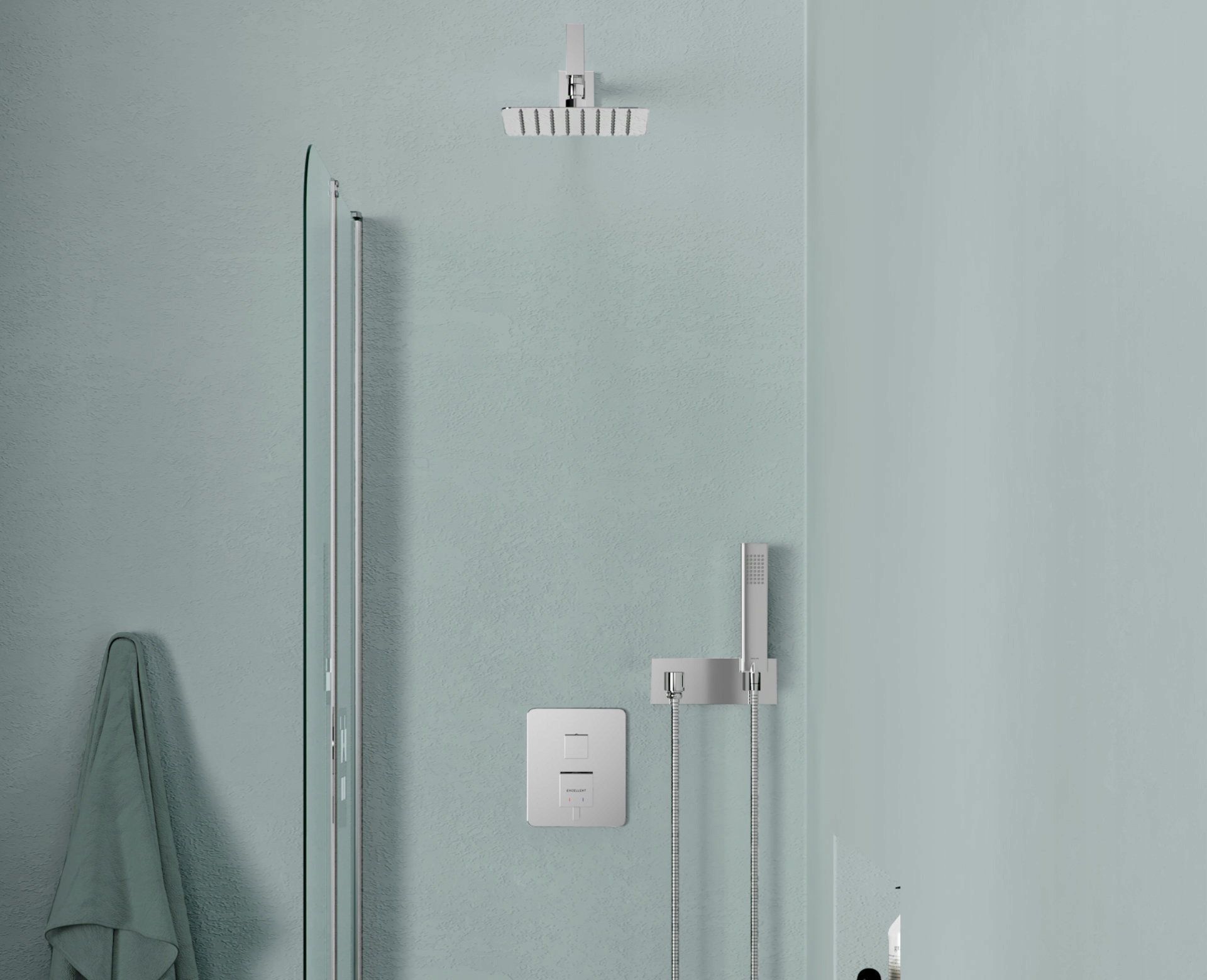 Набір прихованого монтажу Frost Quatro складається зі змішувача для душу та ванни, верхнього тропічного душу та точкового набору. Змішувач для душу та ванни прихованого монтажу серії Frost має Fix-Box, що полегшує установку змішувача та забезпечує постійний оглядовий доступ до механізму змішувача. Механічний перемикач функцій дозволяє зручно вибирати потік води. Квадрат круглий 200×200 з квадратним кронштейном, встановлюється на обраній висоті, має додатковий кріпильний елемент і обмежувач потоку води. Точковий набір стане ідеальним рішенням для користувачів, які не хочуть мочити волосся під час короткої ванни.