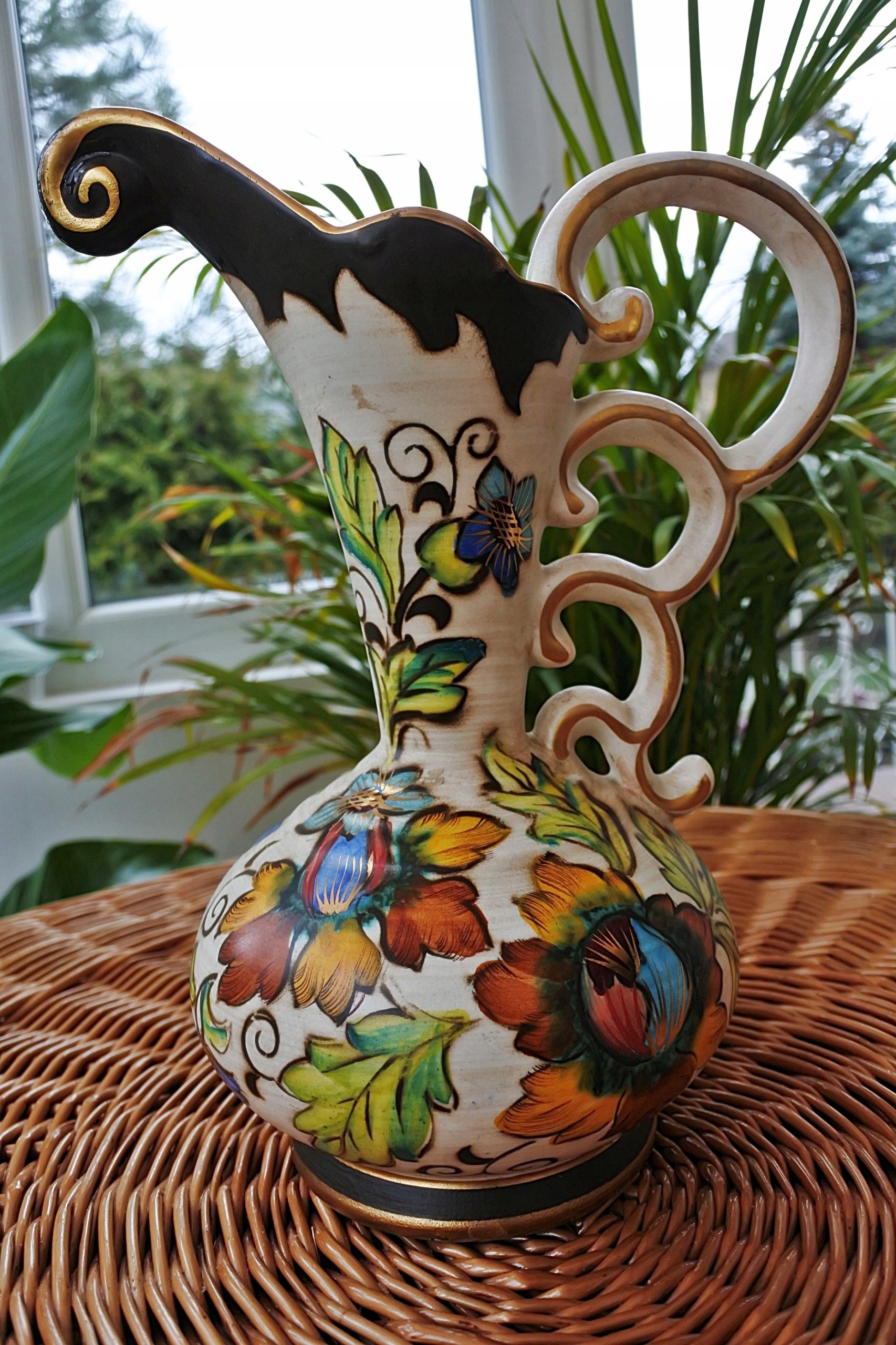 Чудовий глечик H.Bequet з квітами, розписаний вручну