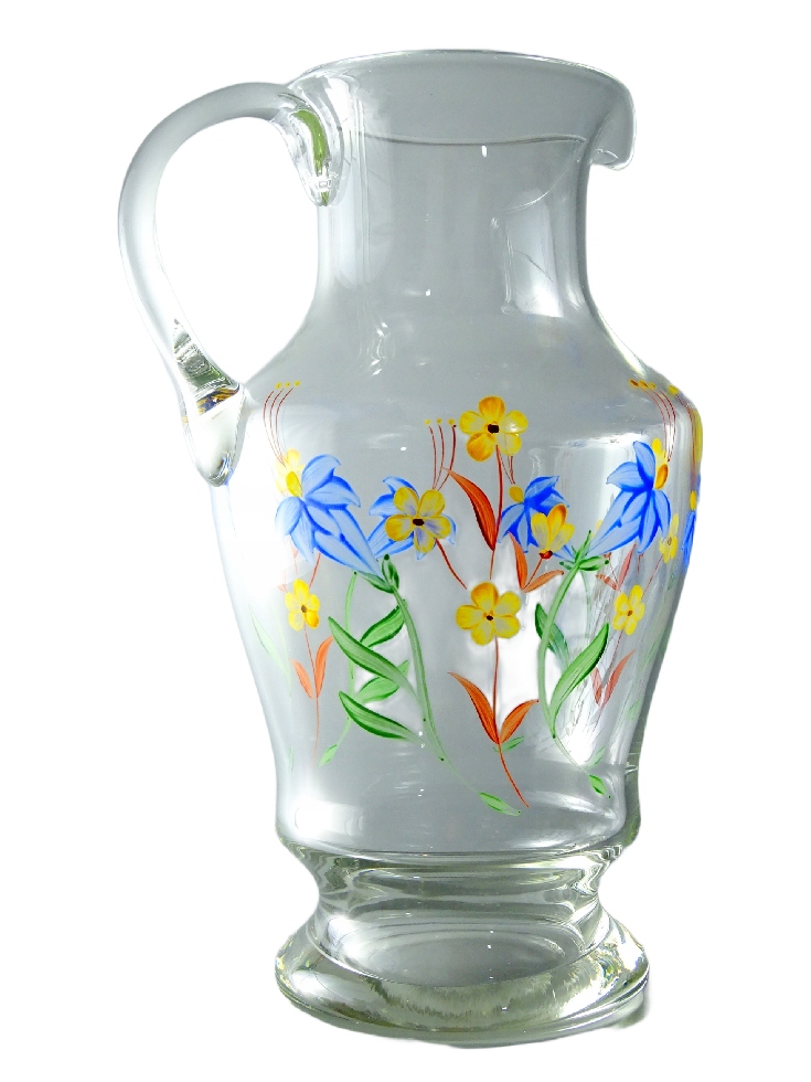 Прекрасний старовинний скляний глечик, видувний і розписаний вручну.
